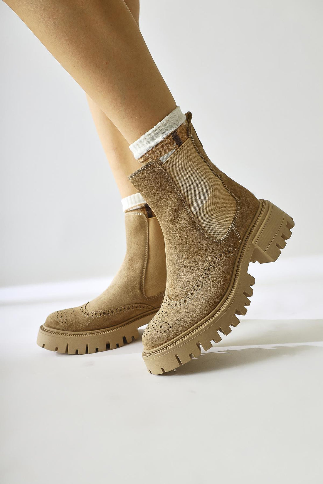 Leyah Nud Süet Lazer Kesim Detaylı Lastikli Bot