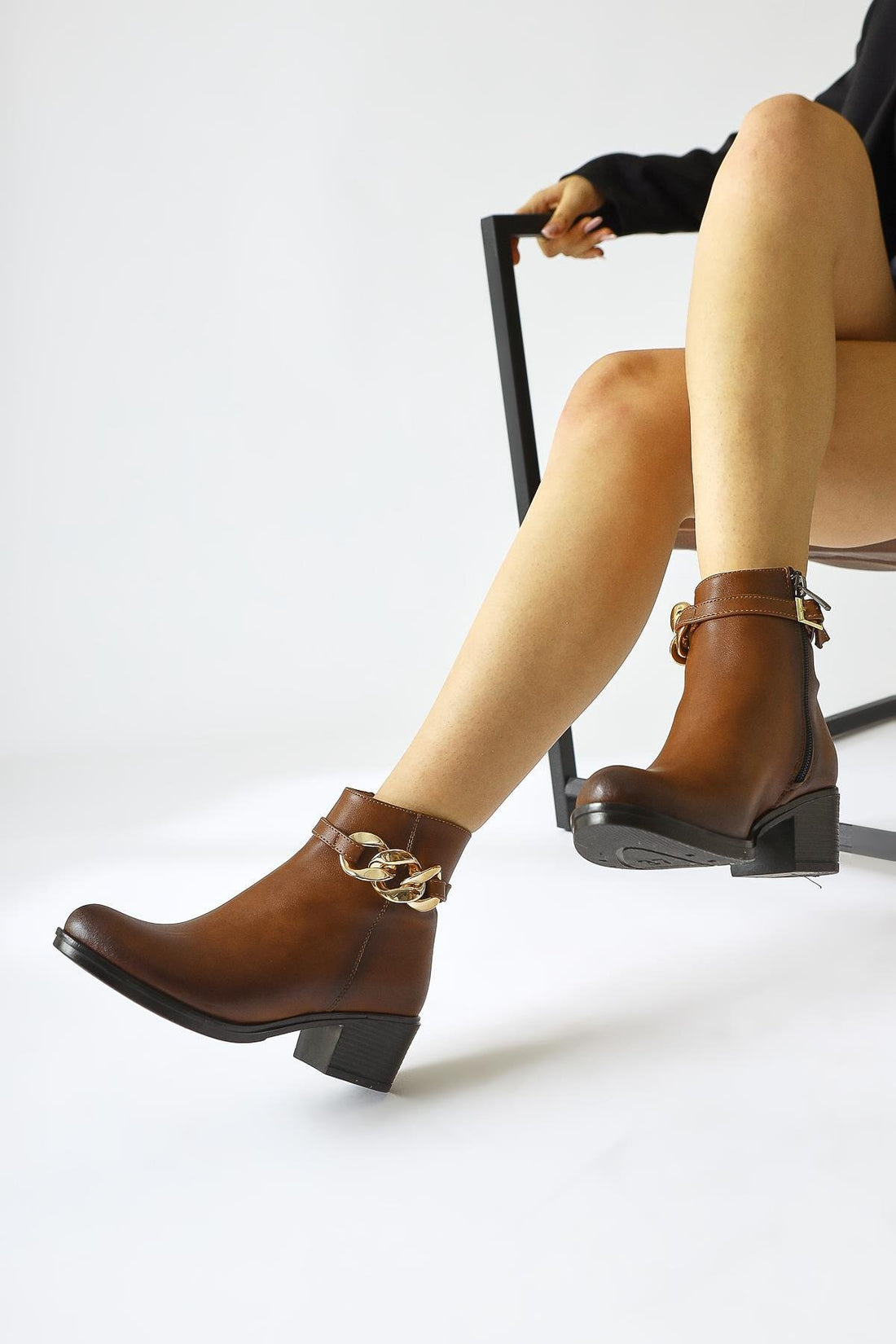 Momena Taba Toka Detaylı Fermuarlı Kısa Topuklu Çizme