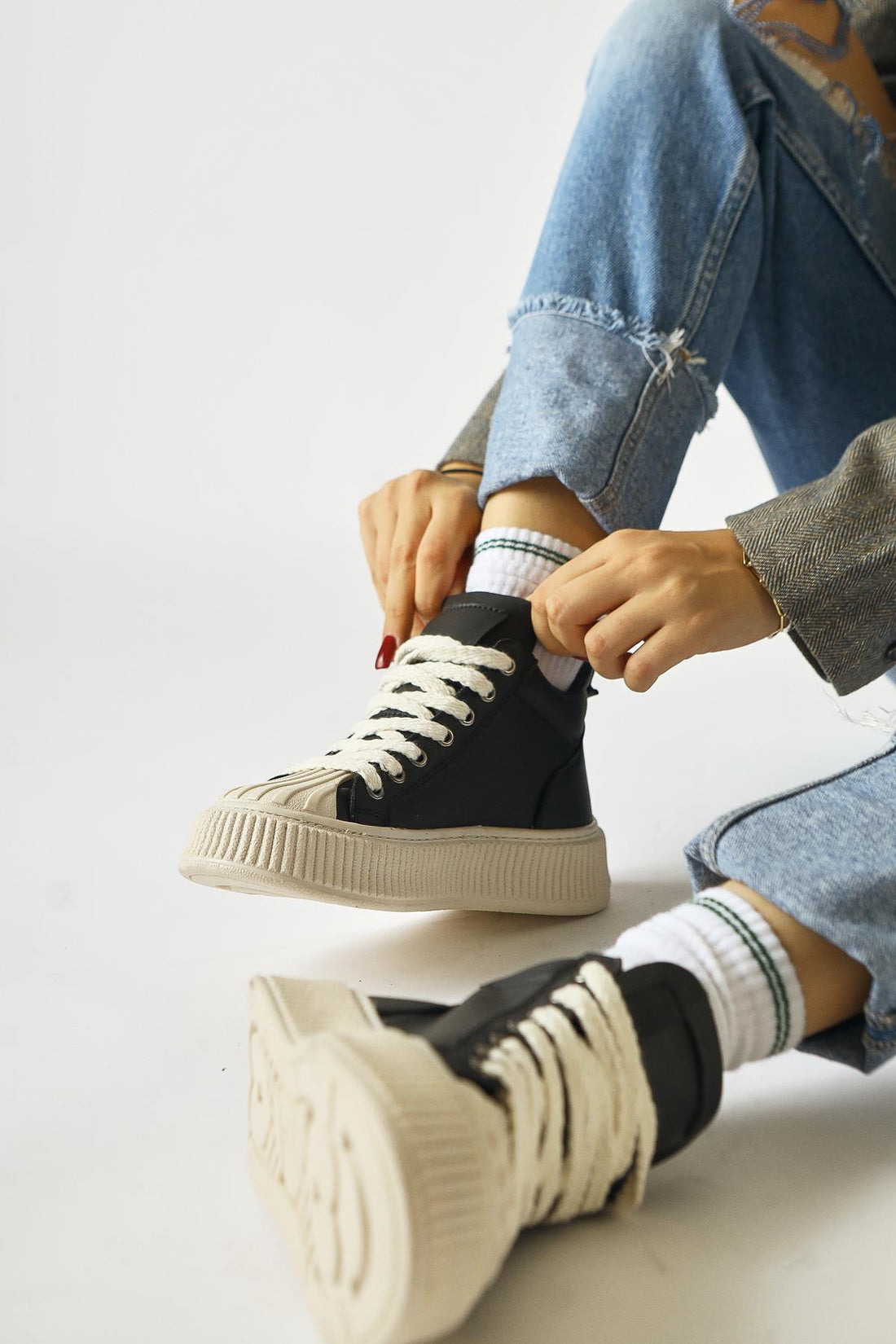 Nely Siyah Asimetrik Bağcıklı Sneakers