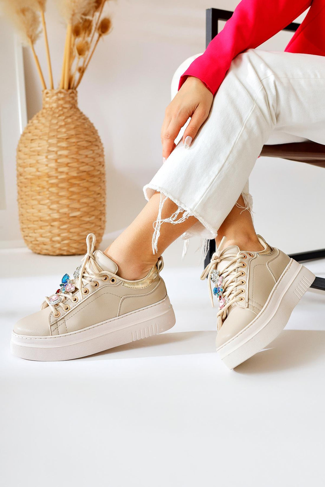 Deena Bej Kalın Tabanlı Taş Detaylı Sneakers