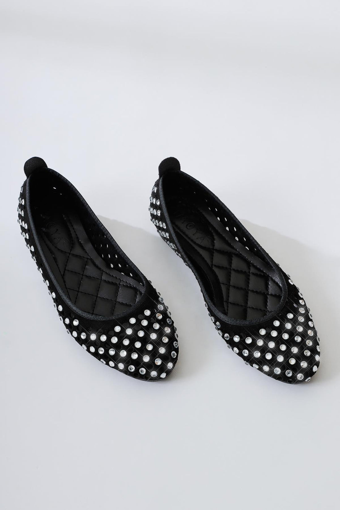 Milinda Siyah Süet Lazer Kesim Delikli Taşlı Babet