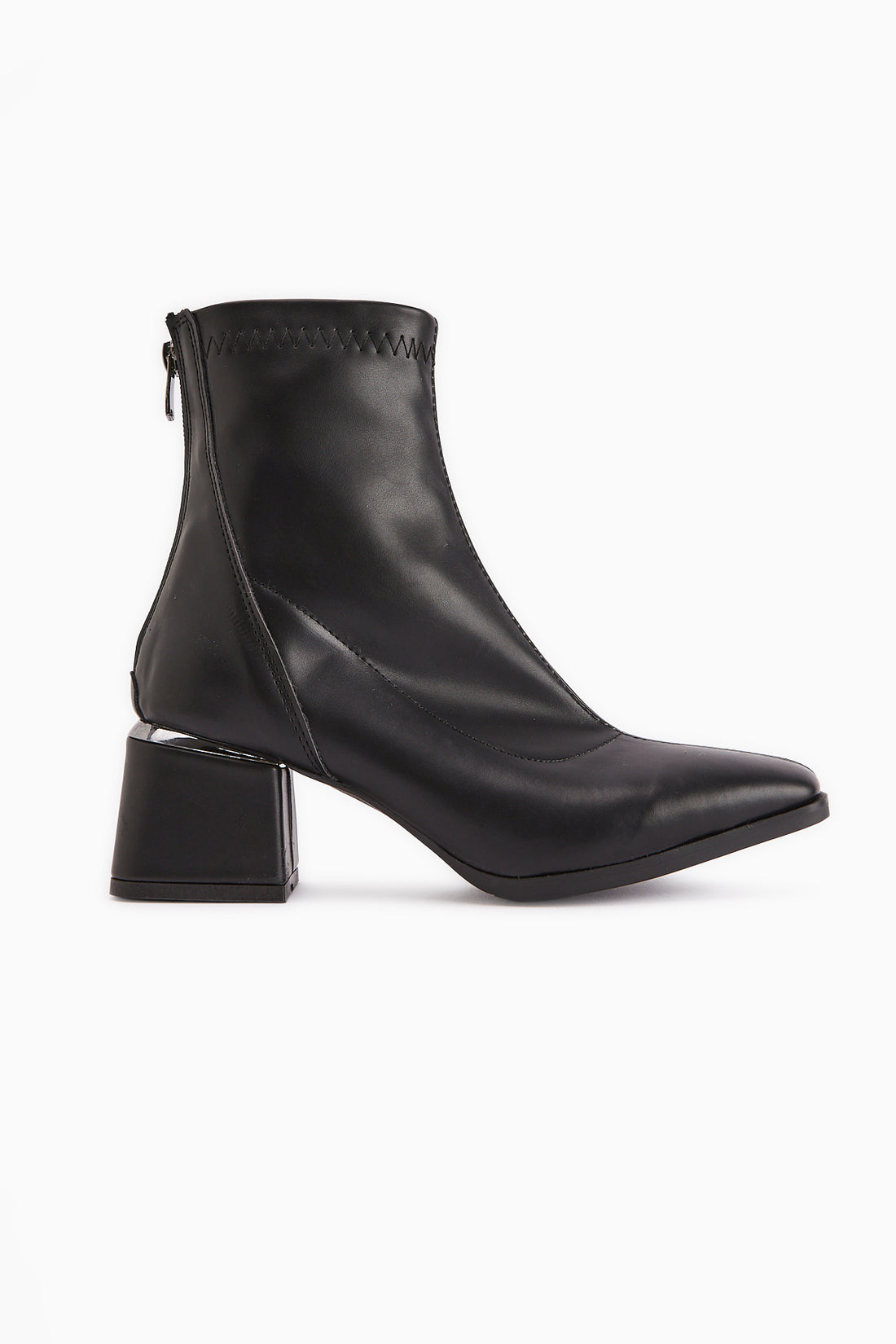 Bahiya Siyah Oval Burunlu Fermuarlı Topuklu Bot