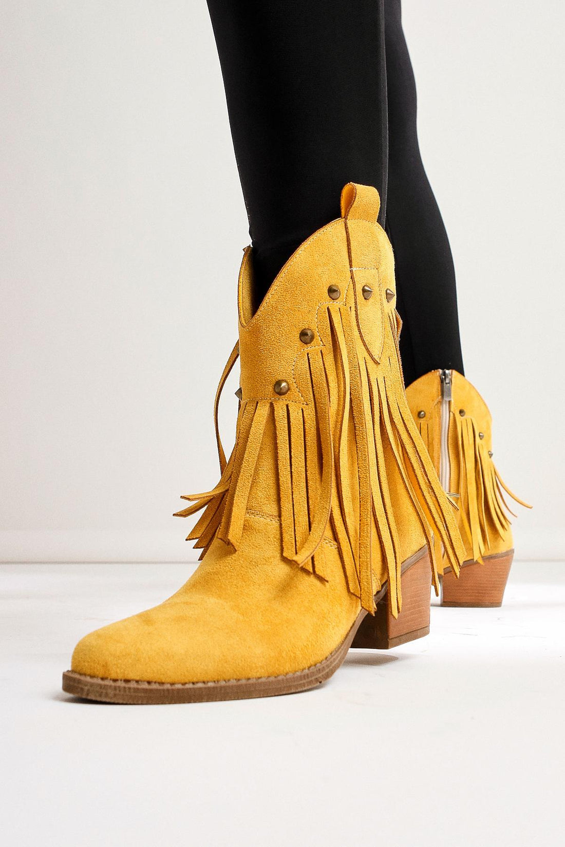 Lillebeth Sarı Süet Püsküllü Zımba Detaylı Western Bot