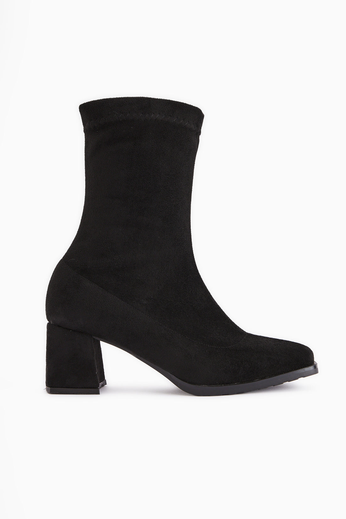 Ghina Siyah Süet Küt Burunlu Topuklu Kadın Bot