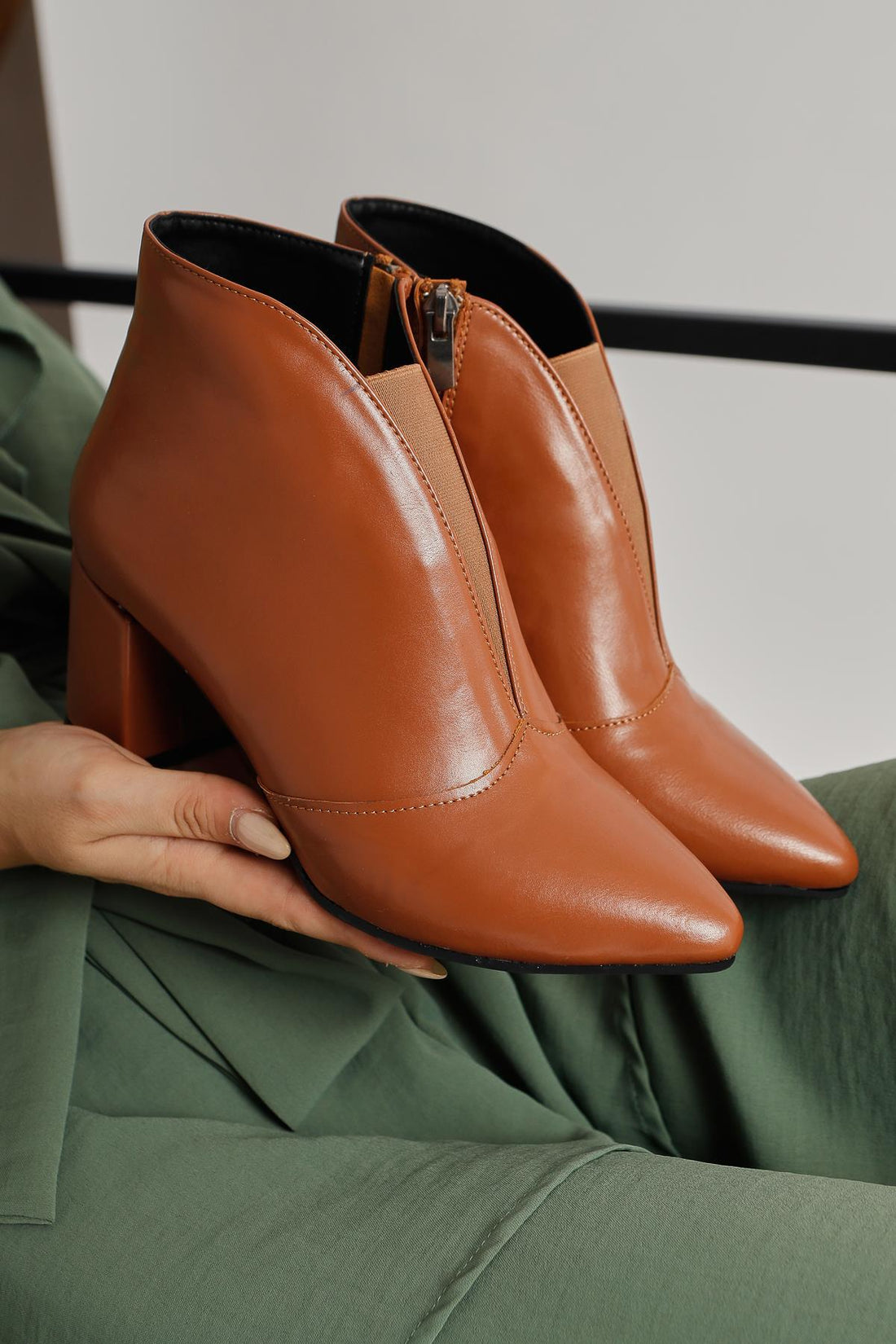 Maria Elena Taba Sivri Burunlu Fermuarlı Topuklu Bot