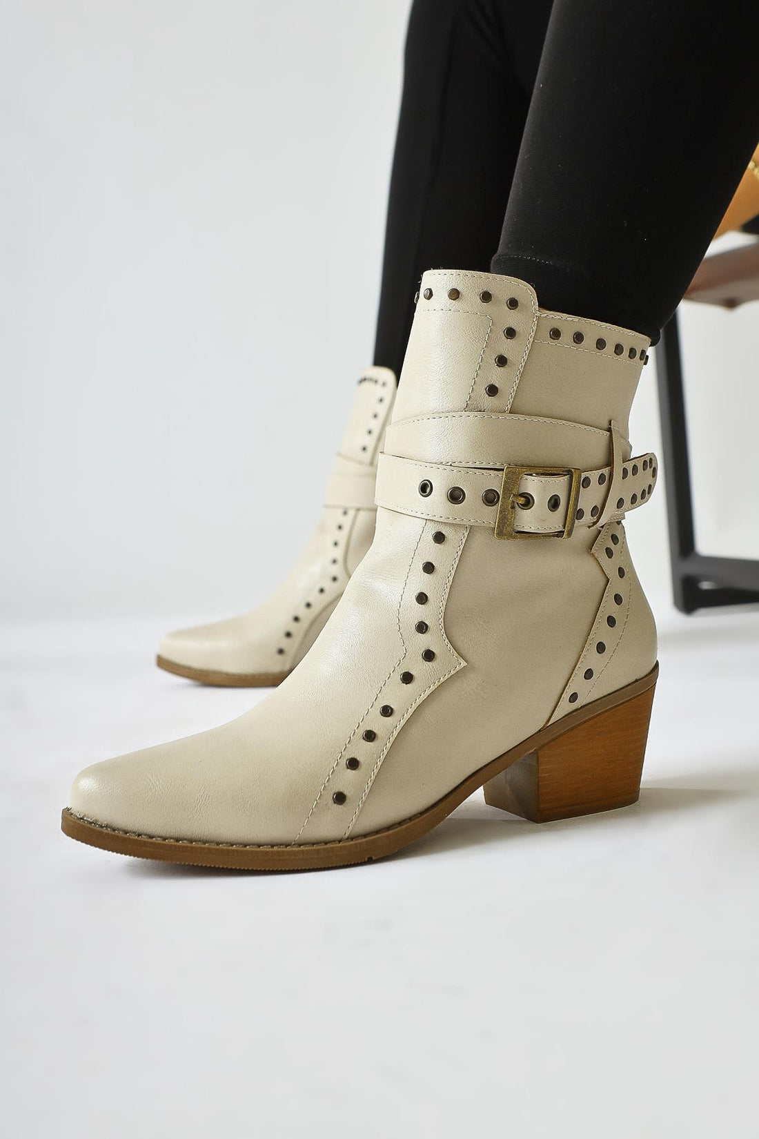 Torin Bej Zımba Detaylı Kemerli Sivri Burunlu Western Bot