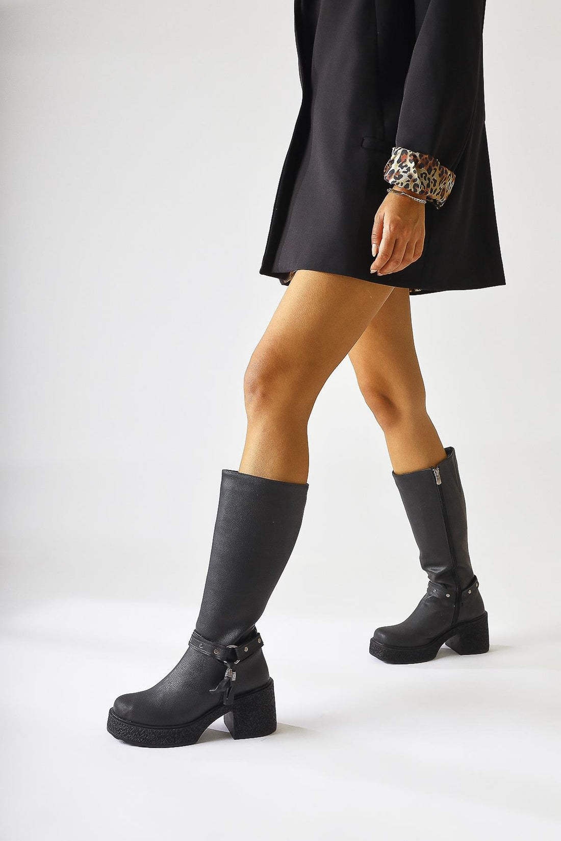 Juliah Siyah Toka Detaylı Fermuarlı Çizme