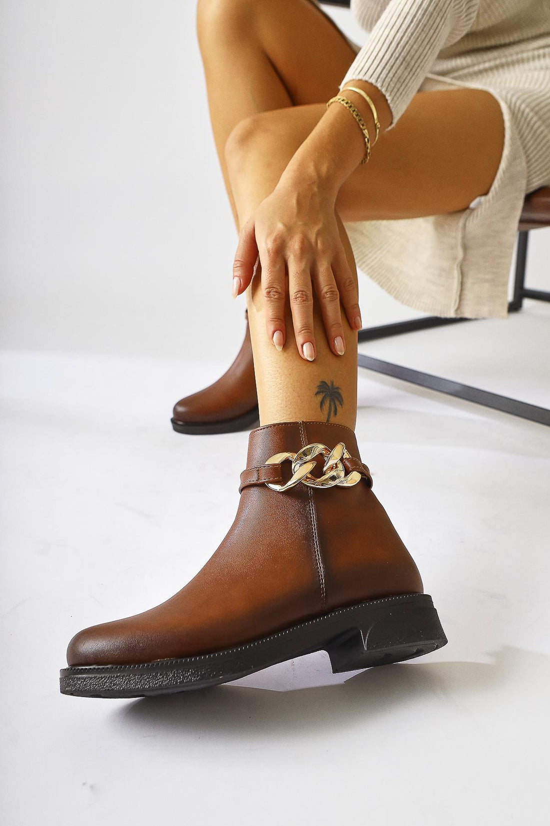 Bahiya Taba Oval Burunlu Fermuarlı Topuklu Bot