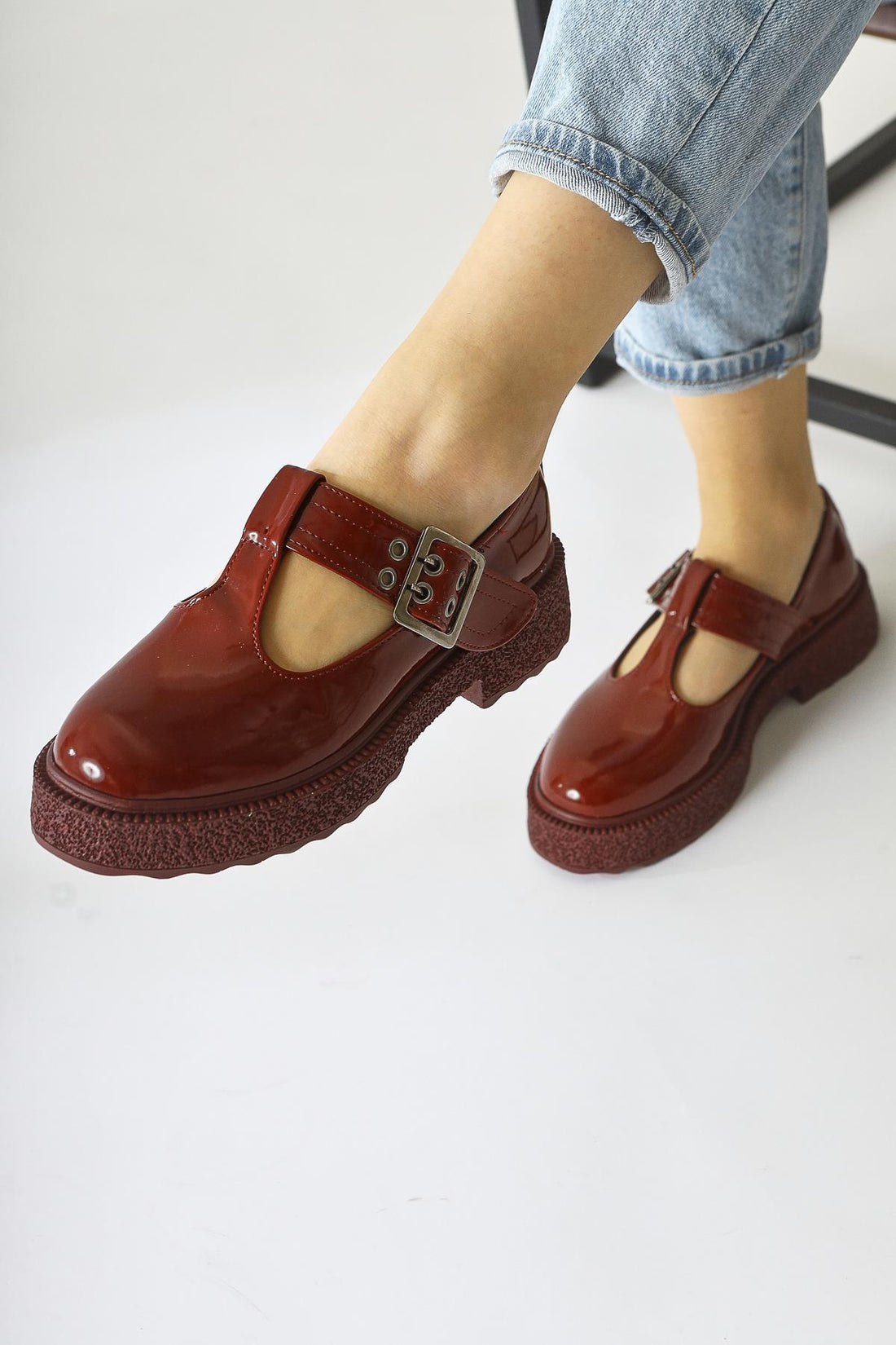 Kalla Bordo Rugan Kalın Tabanlı Tokalı Günlük Ayakkabı