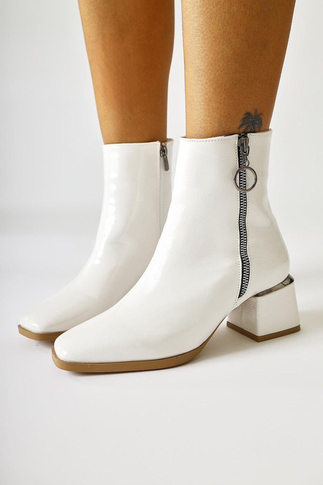 Deyana Beyaz Kırışık Rugan Fermuar Aksesuarlı Bot