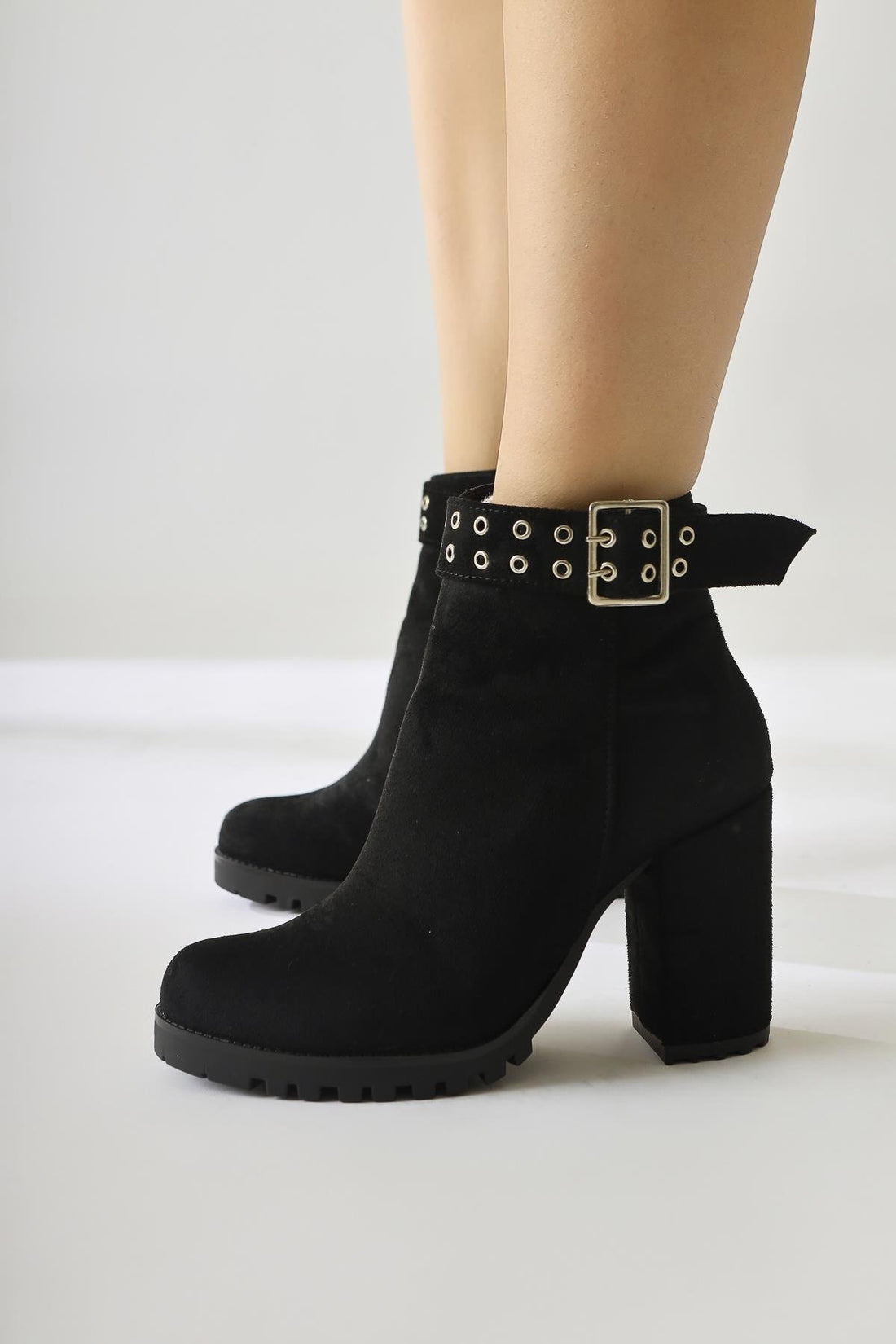 Jonny Siyah Süet Kemer Detaylı Oval Burunlu Fermuarlı Bot