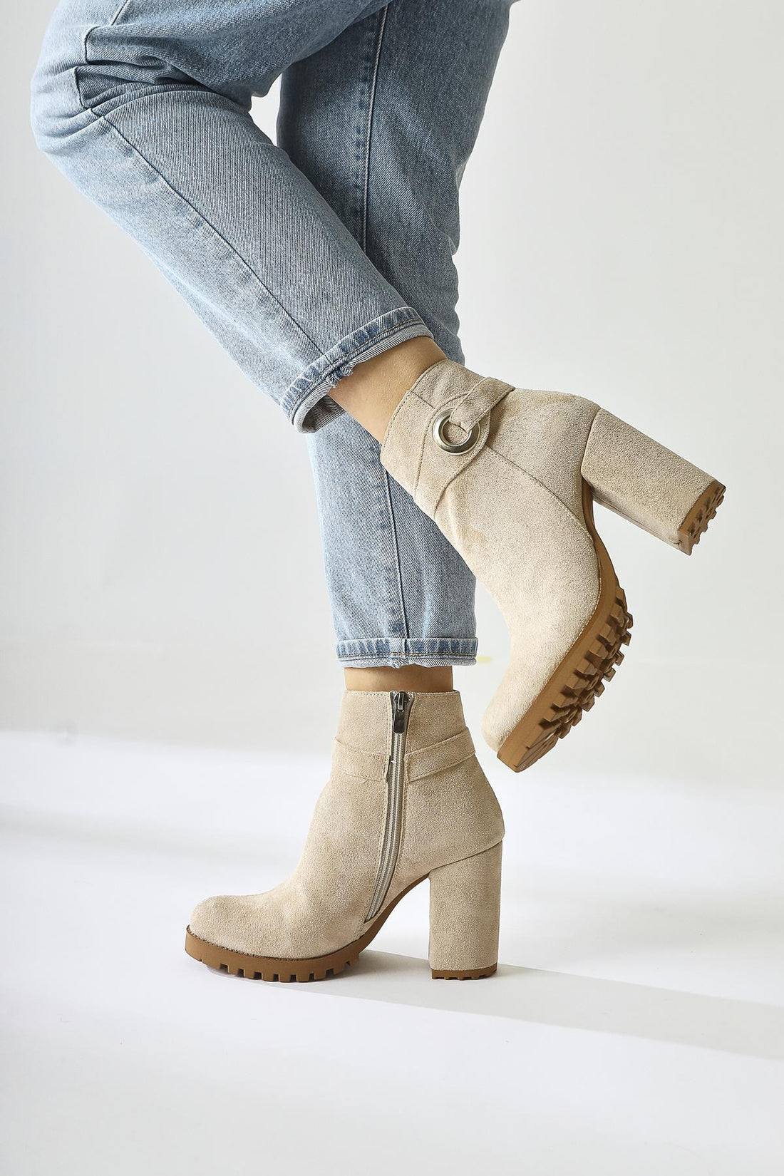 Destina Ten Süet Oval Burunlu Bilek Aksesuarlı Topuklu Bot