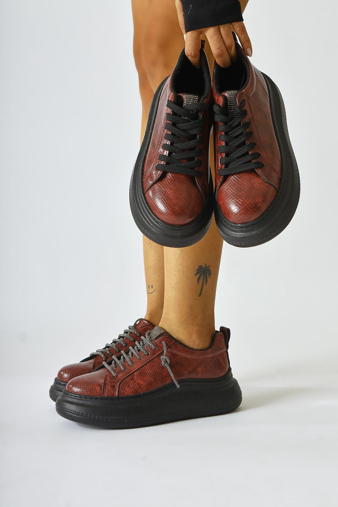 Shake Bordo Taş Detaylı Sneakers (Parlak Bağcık Hediyeli)