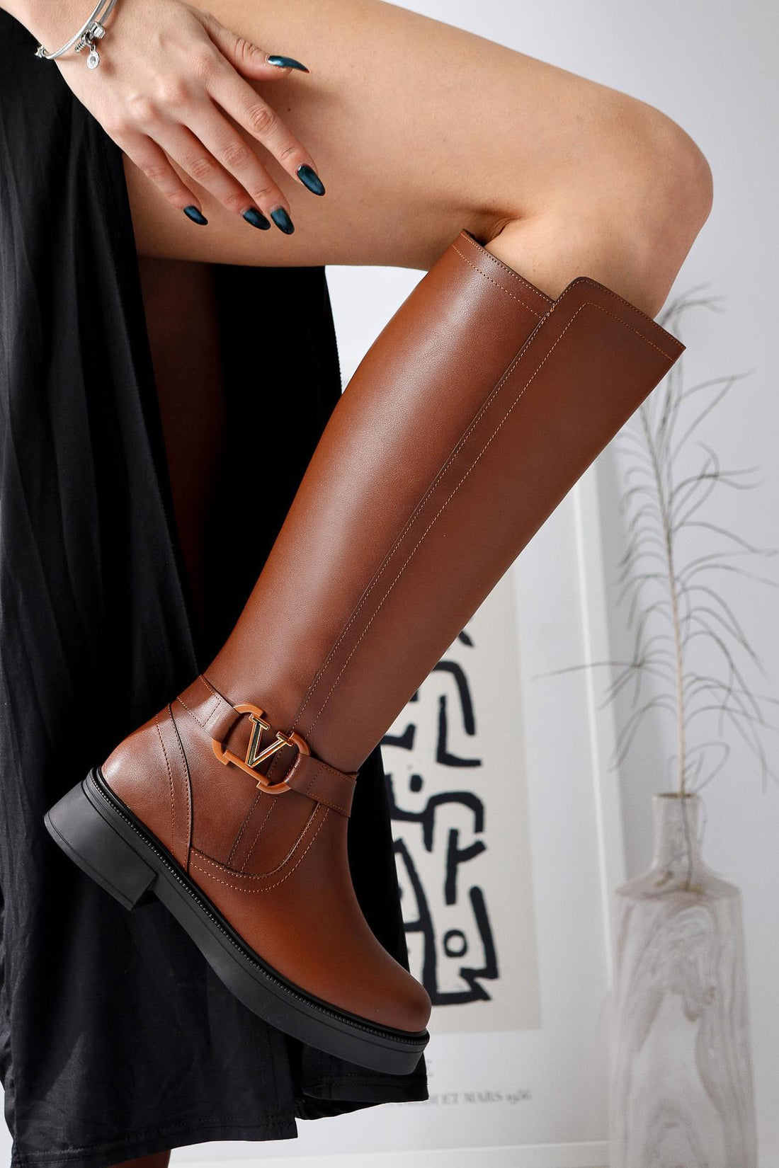 Ginan Taba Toka Detaylı Kısa Topuklu Fermuarlı Çizme