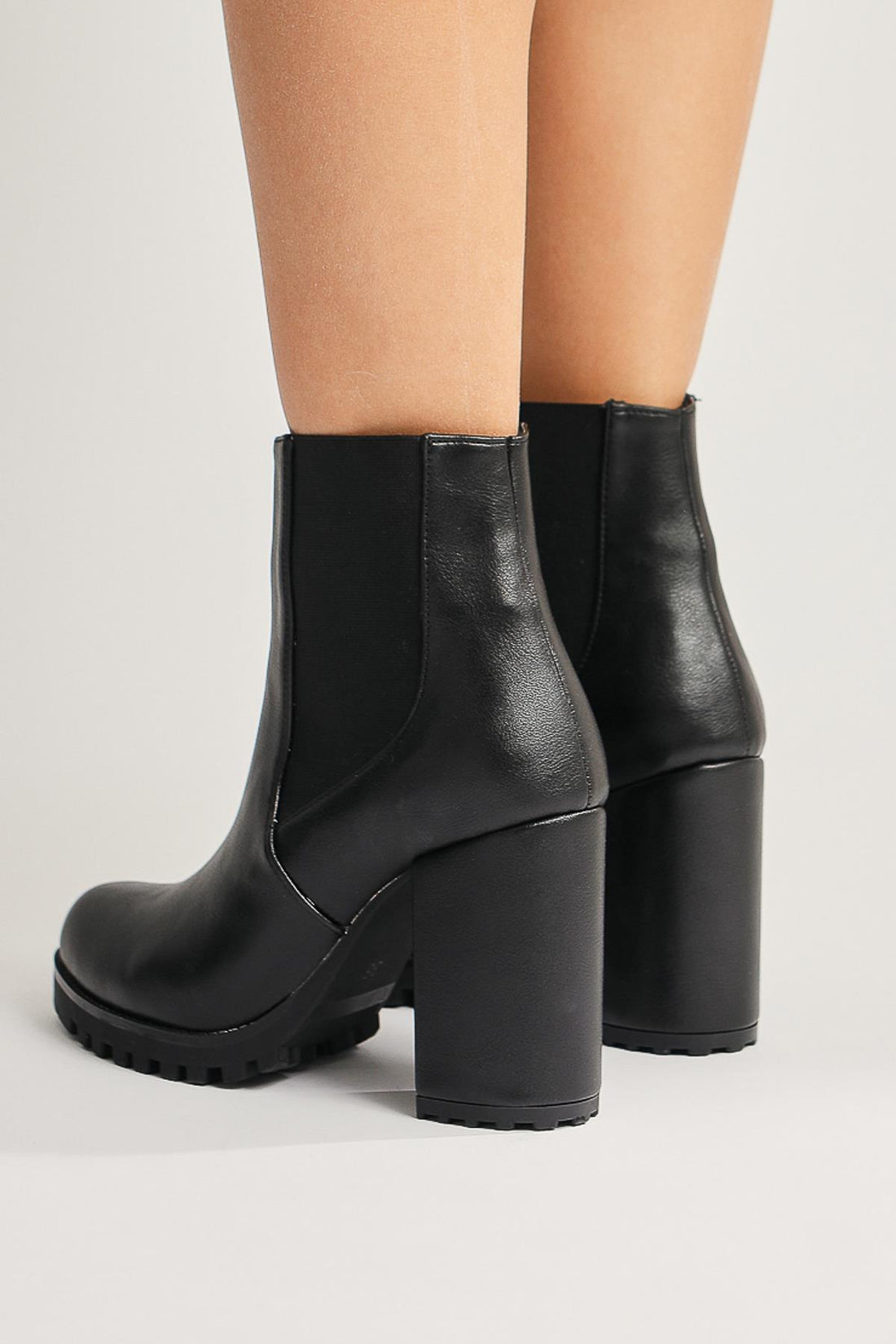 Dorsaf Siyah Oval Burunlu Lastikli Topuklu Bot