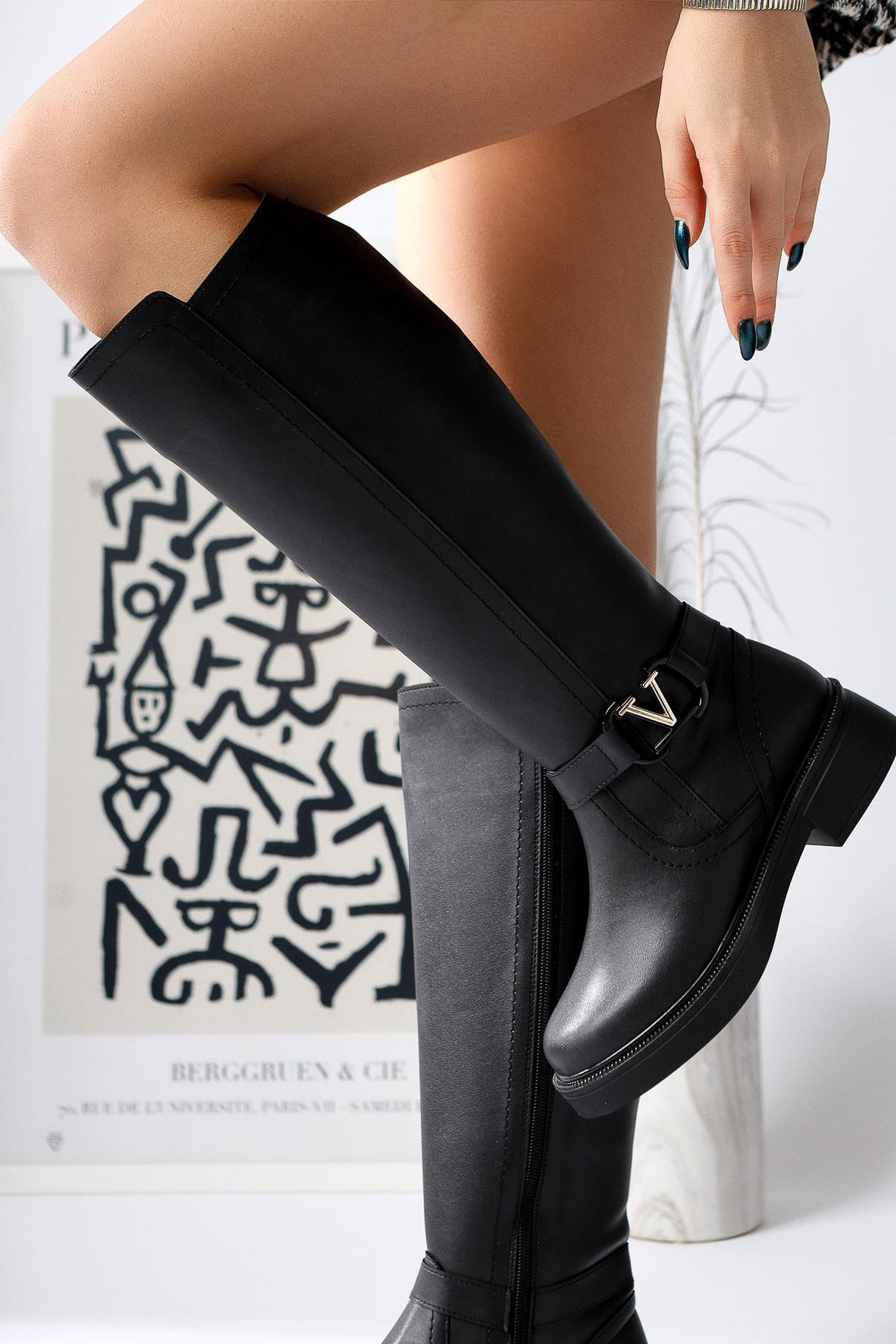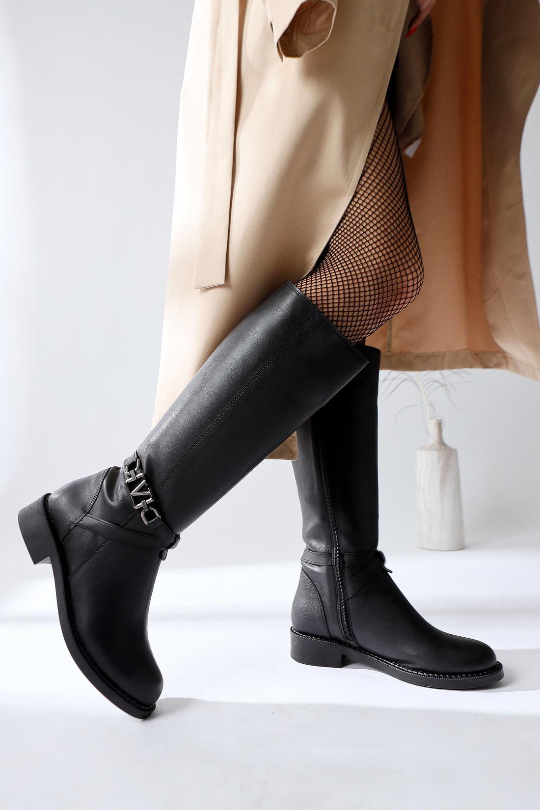 Momena Siyah Toka Detaylı Fermuarlı Kısa Topuklu Çizme