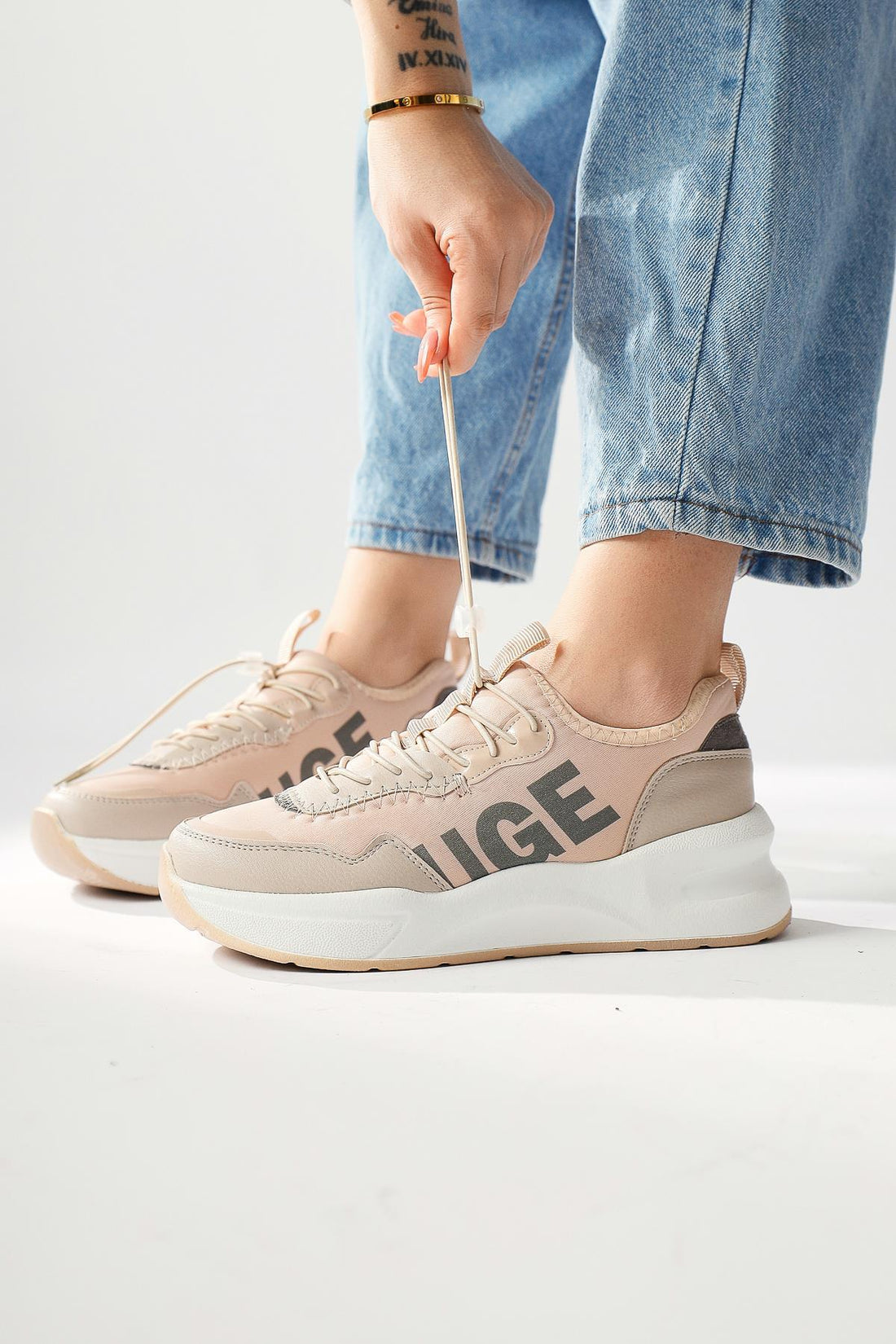 Mintra Bej Dalgıç Kumaş Baksılı Sneakers