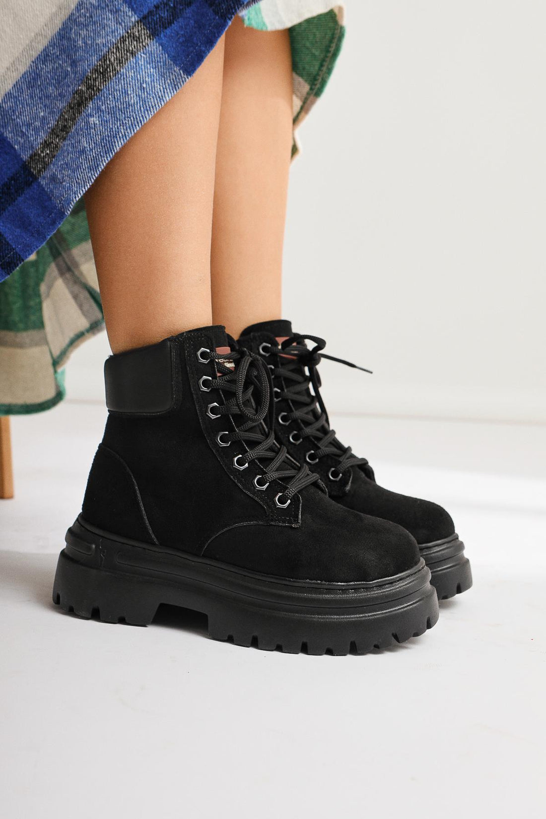 Phoi Siyah Süet Kalın Tabanlı Bağcıklı Bot