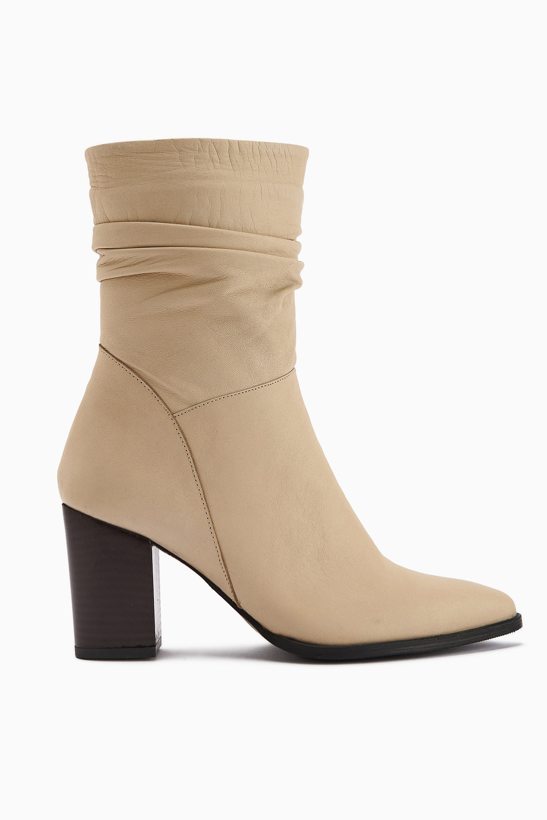Tamina Hakiki Deri Bej Sivri Burunlu Topuklu Kadın Bot