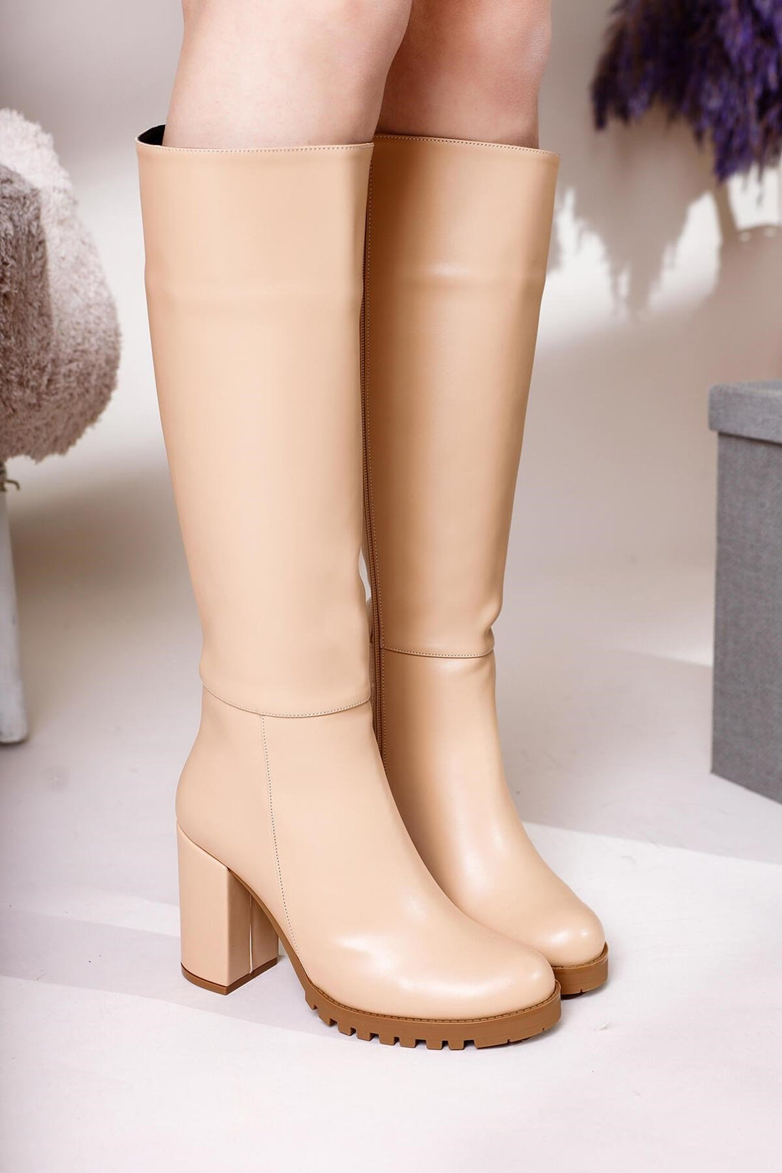 Dayna Bej Kalın Tabanlı Çekme Çizme