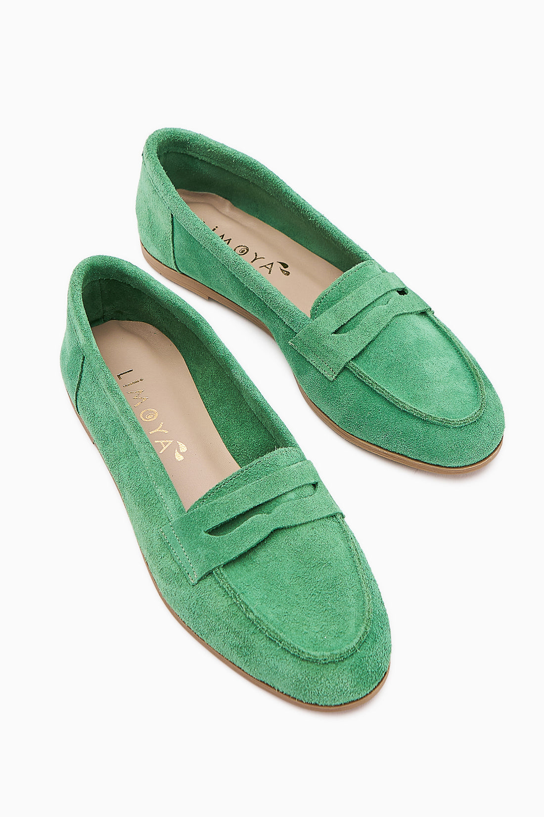 Solina Hakiki Deri Yeşil Süet Makosen Ayakkabı Rahat Günlük Loafer