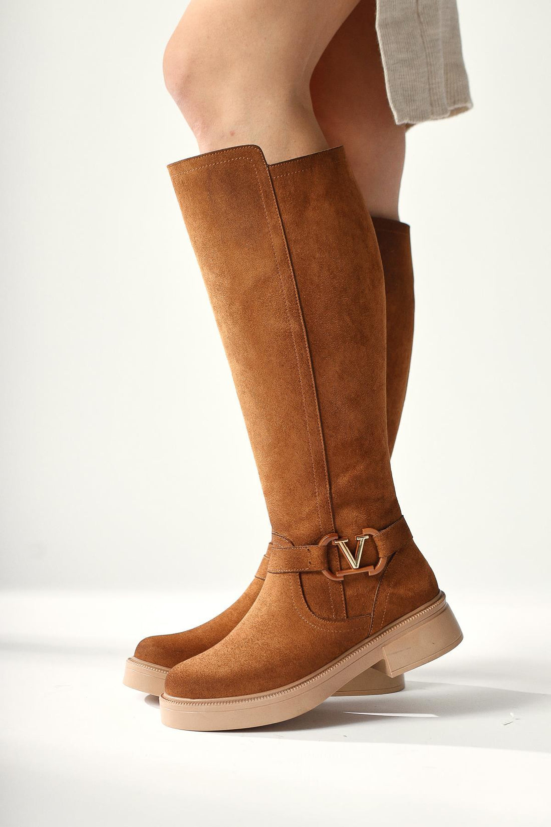 Ginan Taba Süet Toka Detaylı Kısa Topuklu Fermuarlı Çizme