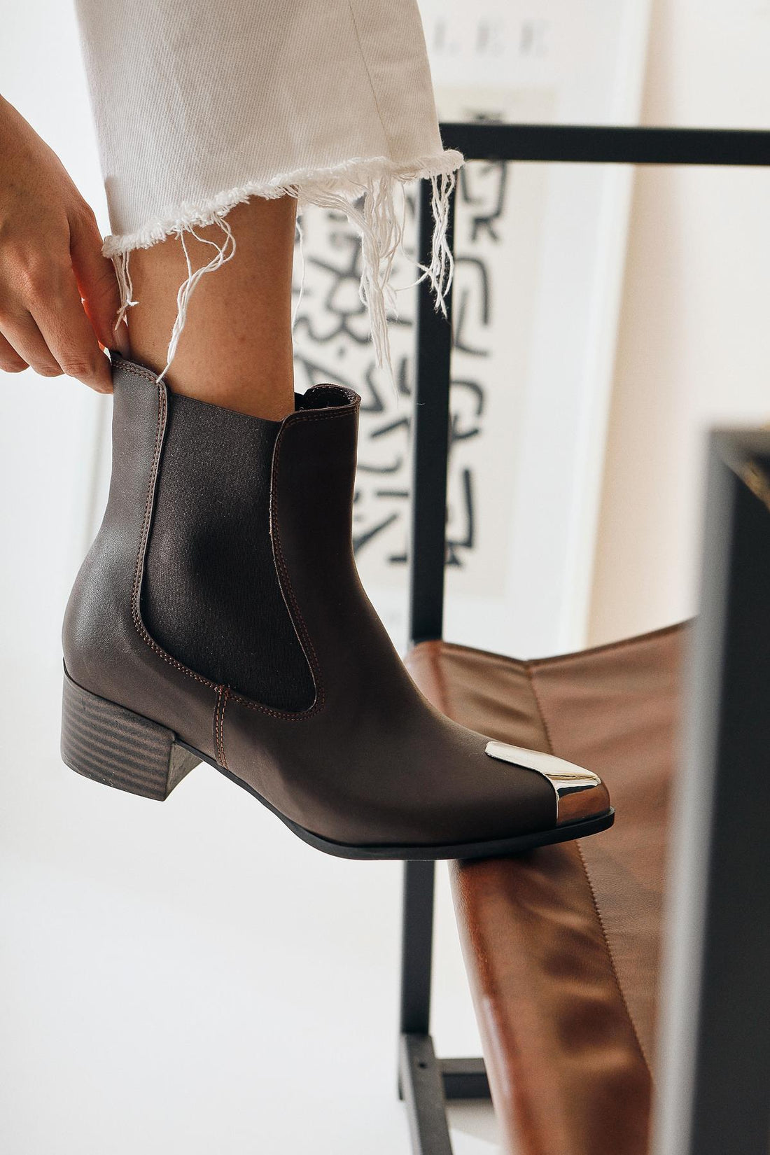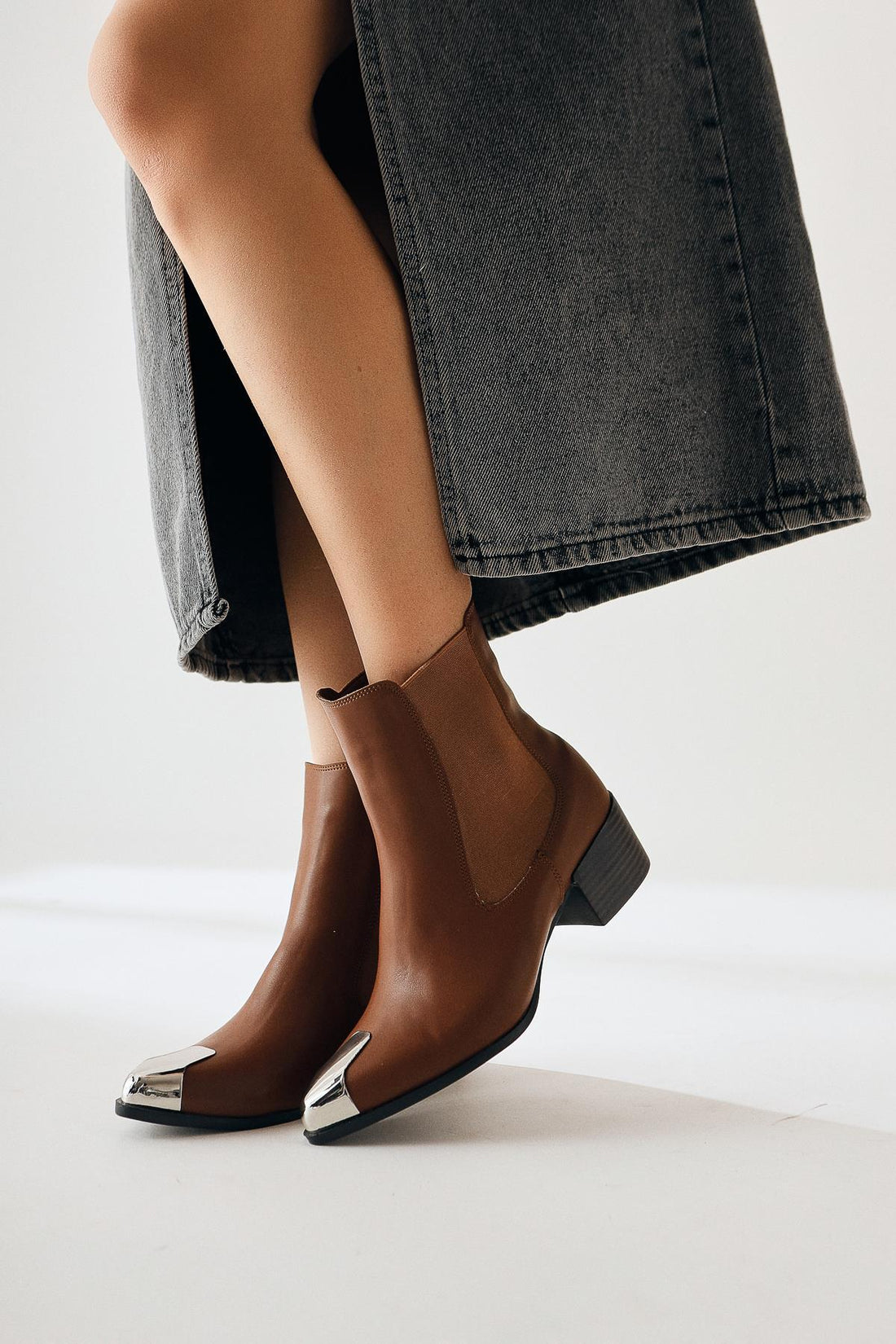 Heda Kahve Sivri Burunlu Metal Detaylı Bot