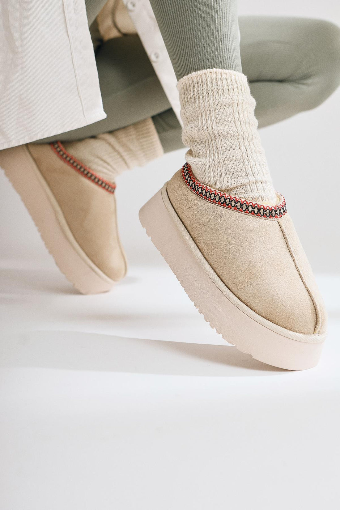 Mhy Bej Süet Kalın Tabanlı Kışlık Terlik