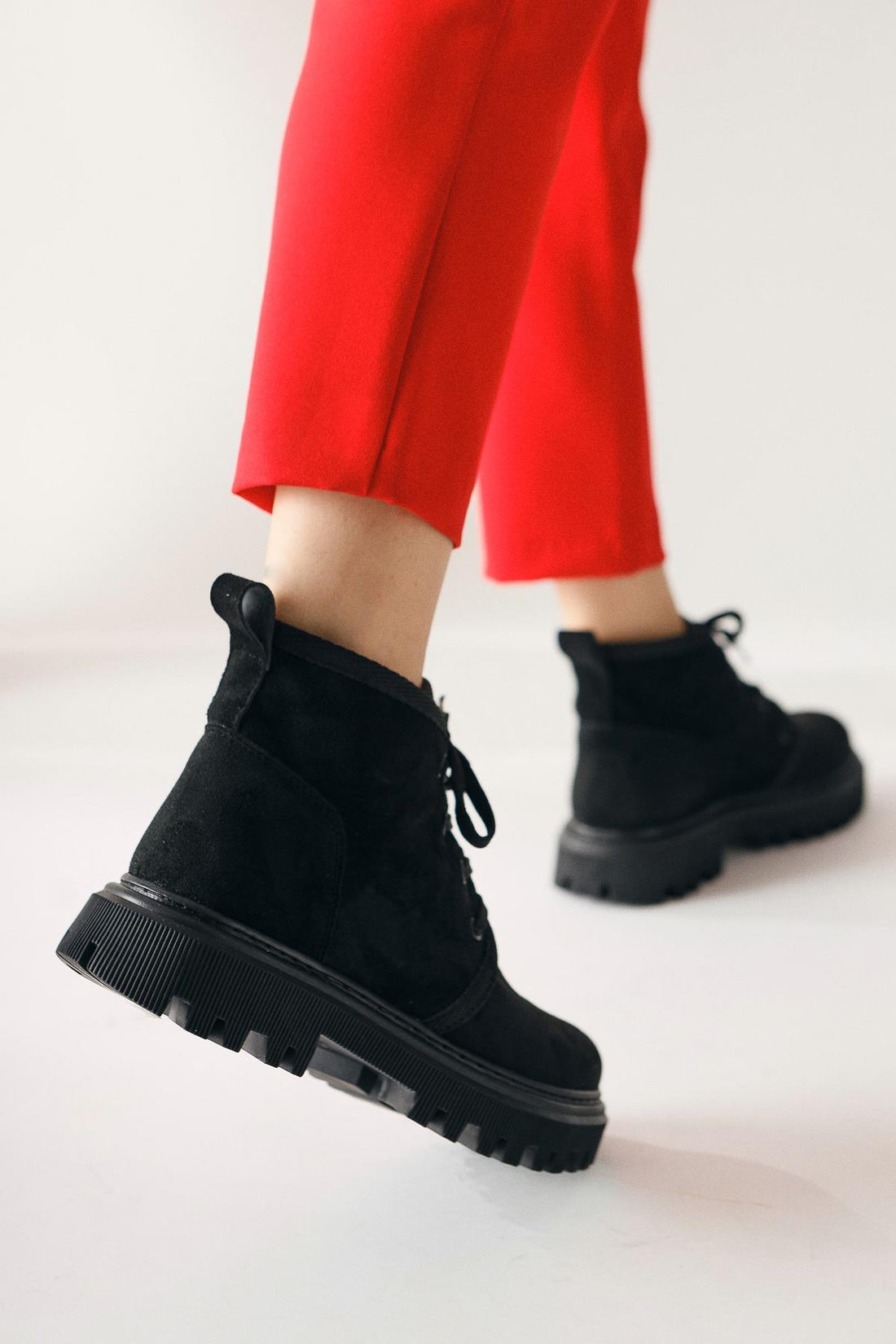 Etidal Siyah Süet Kalın Tabanlı Bağcıklı Bot