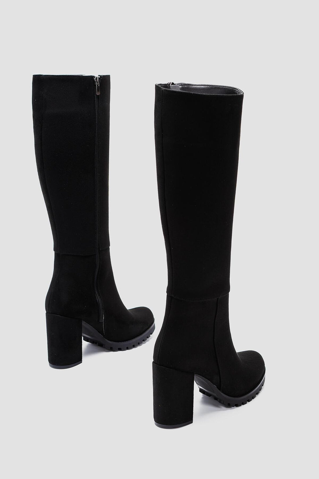 Brooklynn Siyah Süet Kalın Topuklu Diz Altı Çizme