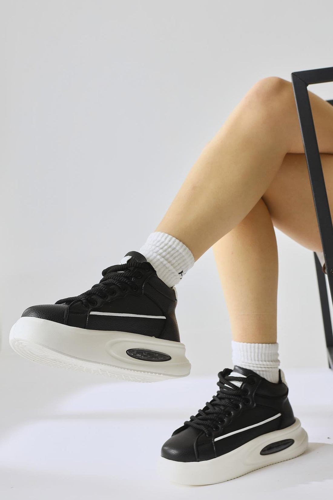Lourin Siyah Deri Desenli Havalı Taban Bağcıklı Spor Bot