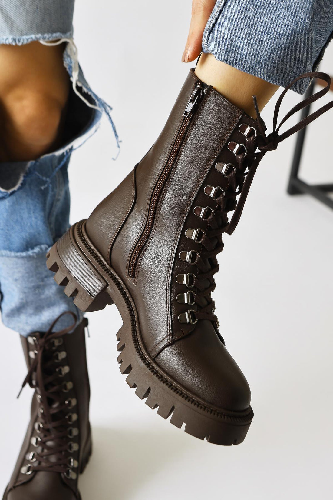 Suzette Kahve Bağcıklı Kalın Tabanlı Bot