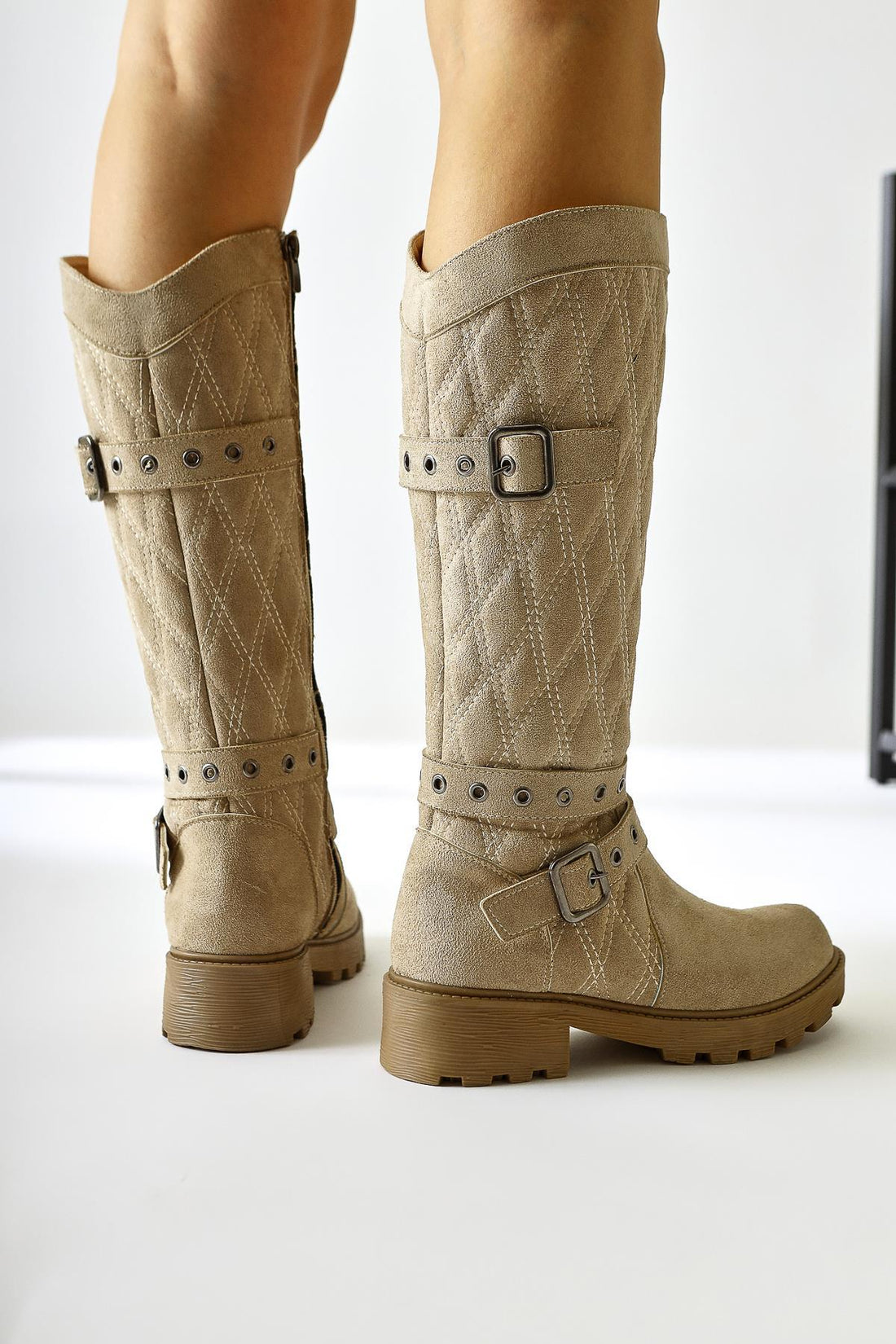 Carma Bej Süet Kemer Detaylı Kapitone Dikiş Çizme