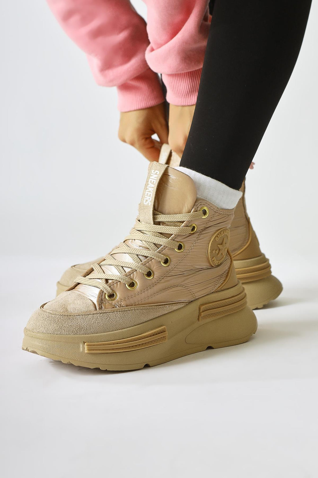 Sterin Bej Süet Parlak Yıldız Detaylı İçi Kürklü Kısa Bot