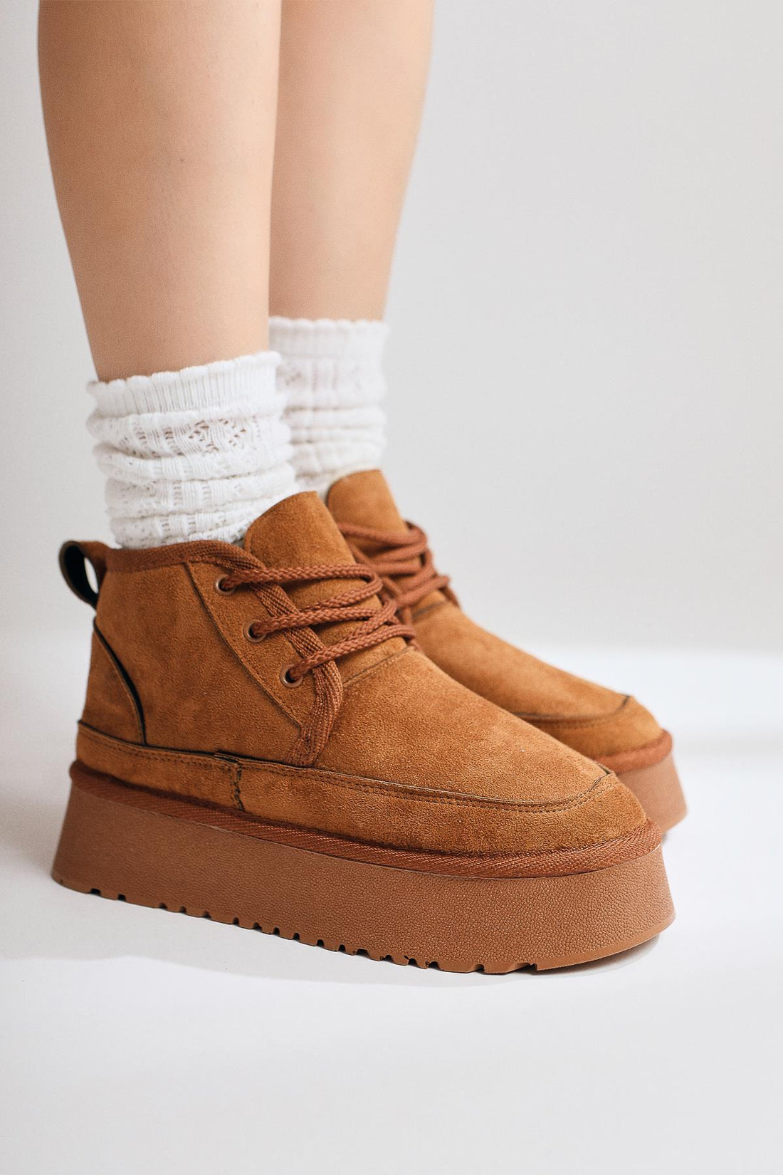 Tinfos Taba Süet Kalın Tabanlı Bağcıklı Yarım Bot
