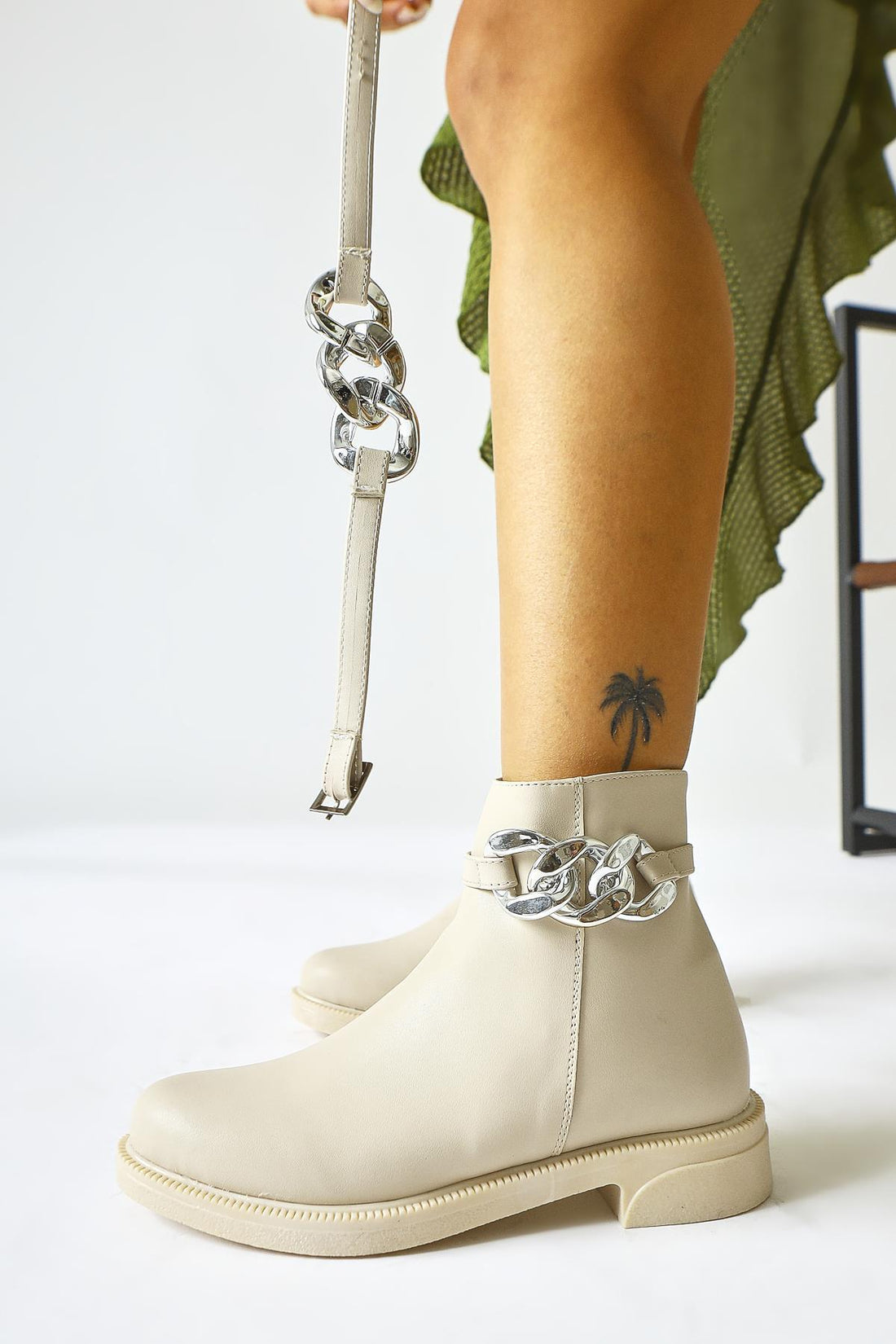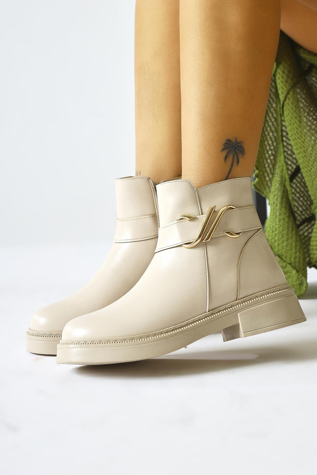 Sydra Bej Oval Burunlu Çıkarılabilir Aksesuarlı Bot