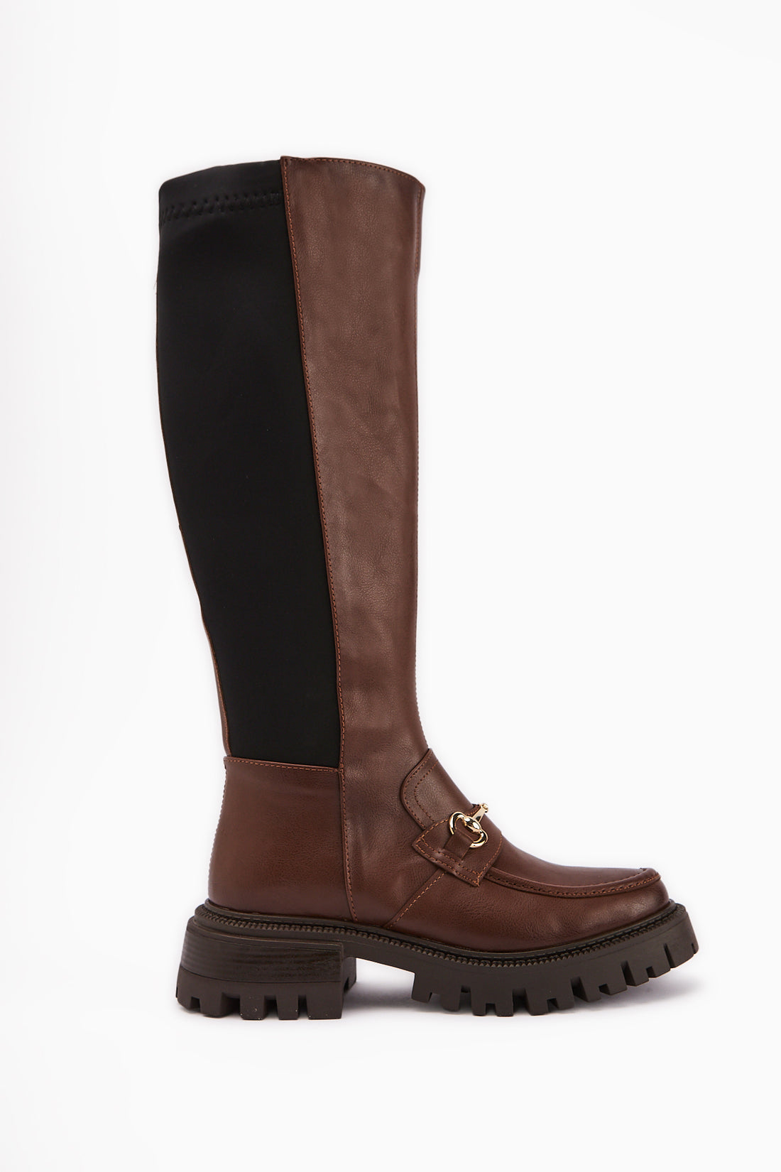 Meli Taba Toka Detaylı Dalgış Kumaşlı Tokalı Çizme