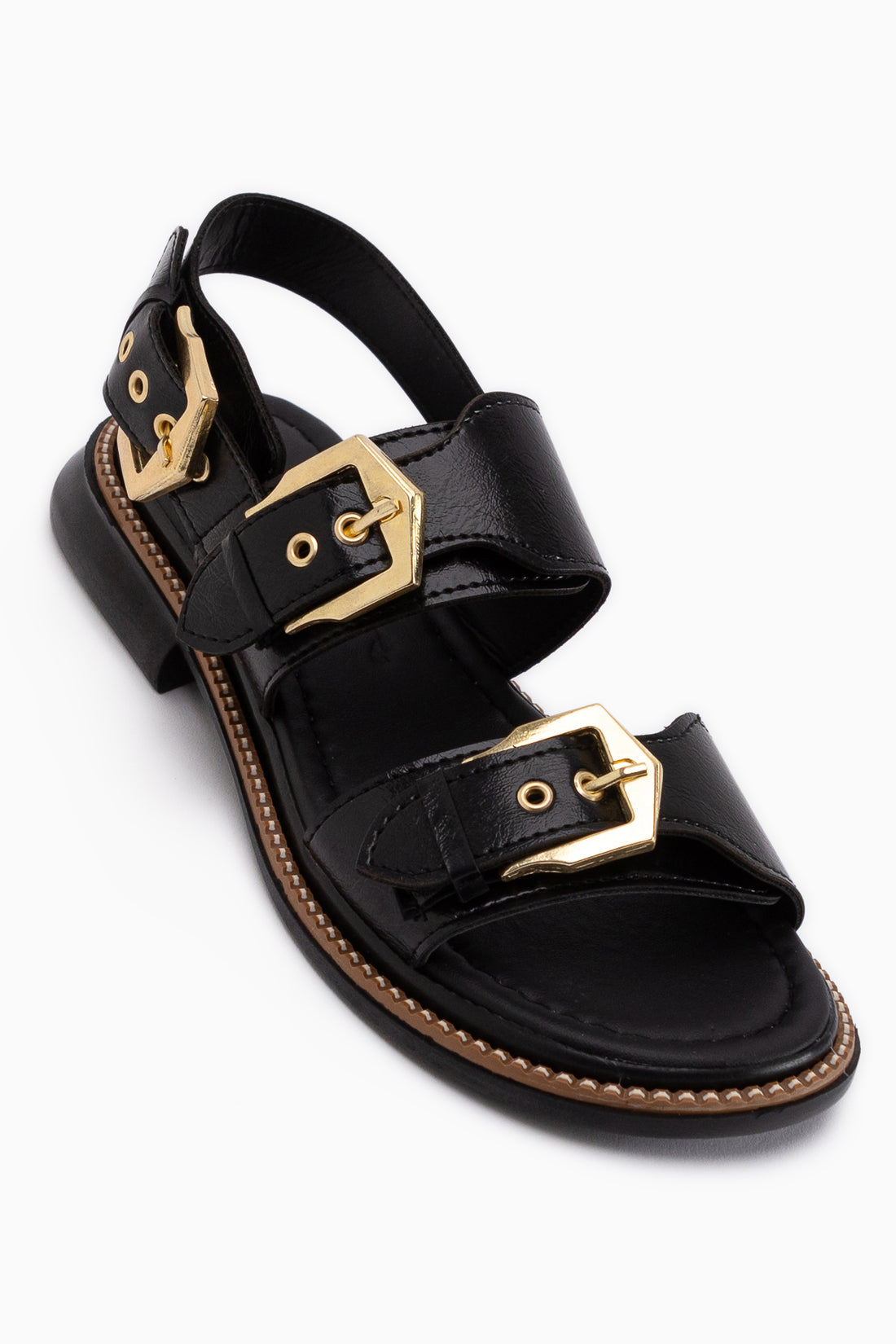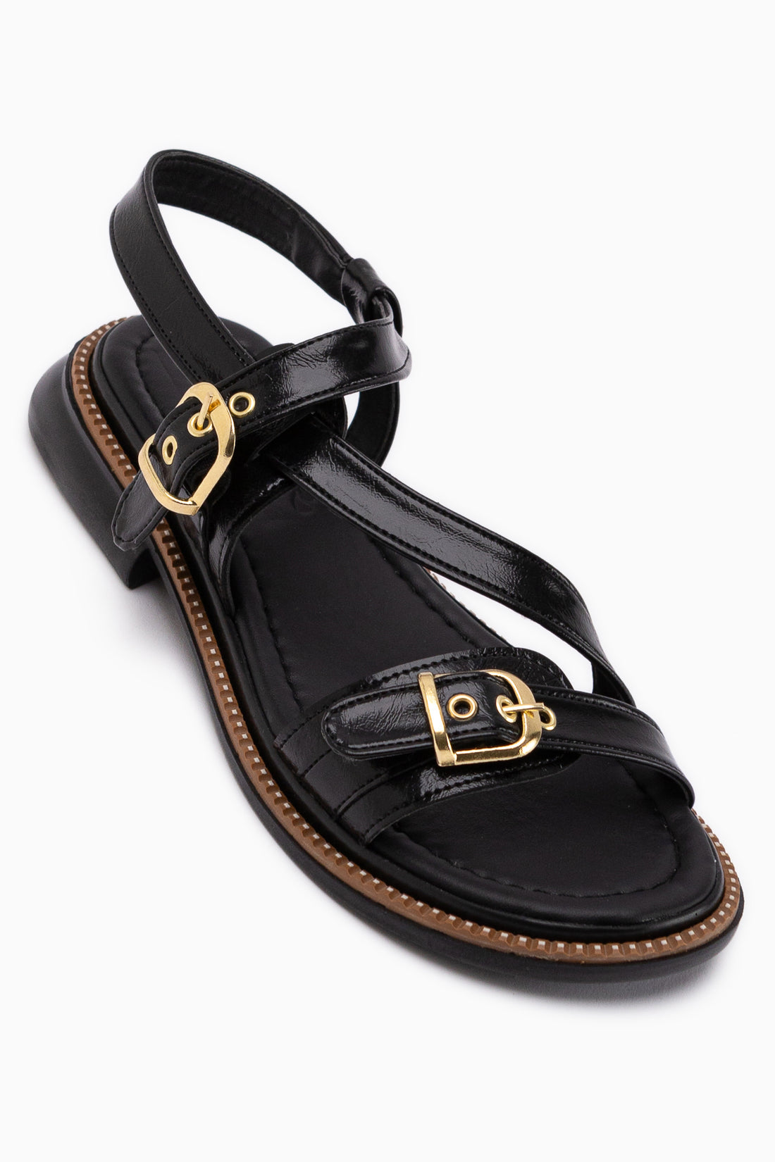 Liena Siyah Çift Tokalı Kadın Sandalet