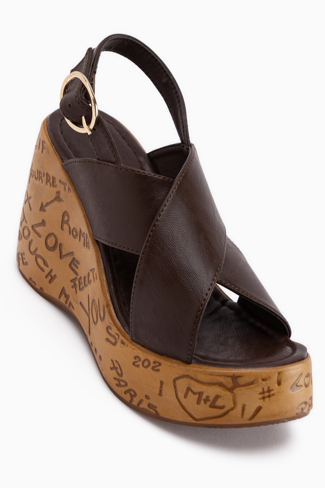 Tilda Kahve Lastikli Dolgu Topuklu Sandalet