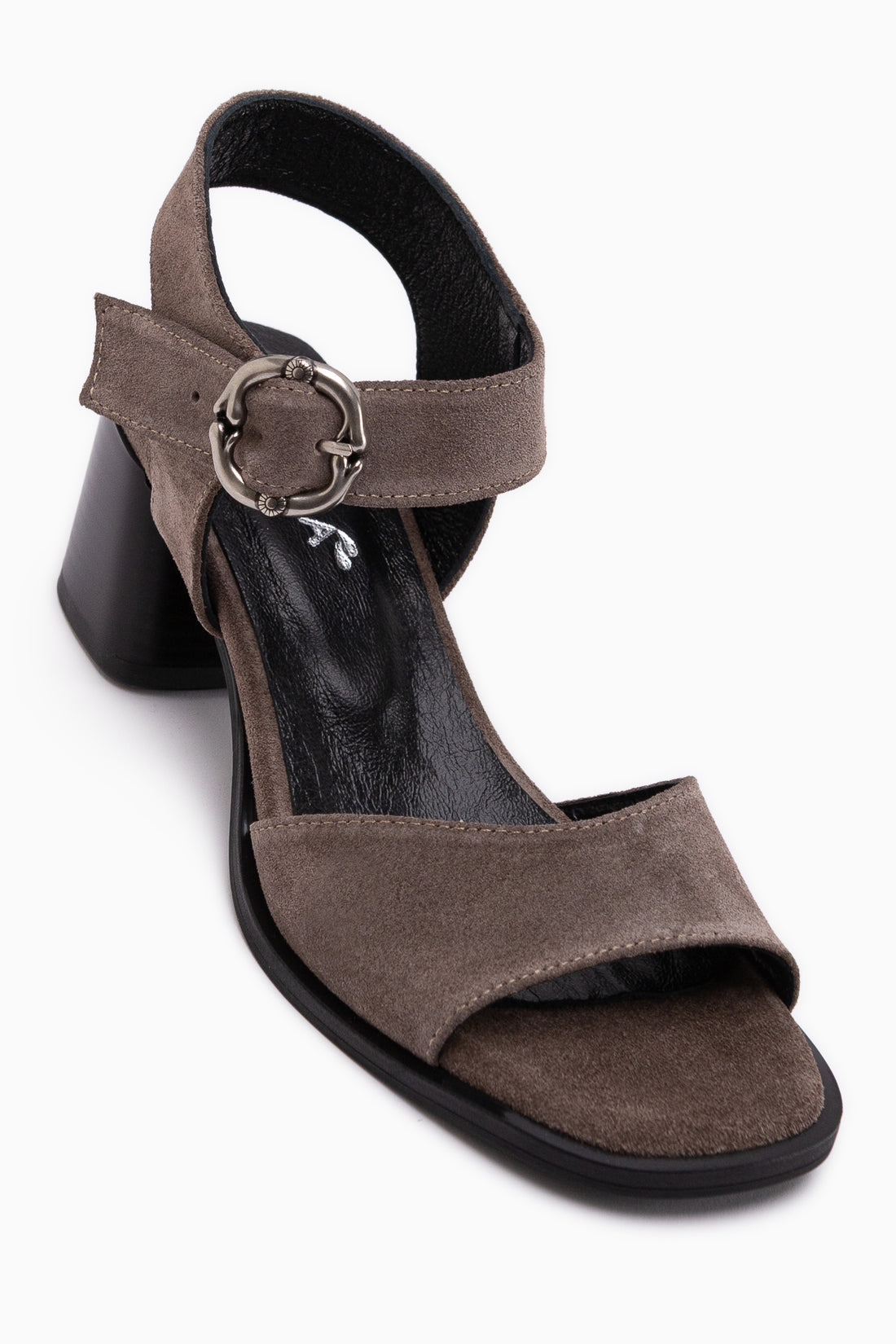 Carina Hakiki Deri Vizon Süet Topuklu Kadın Sandalet