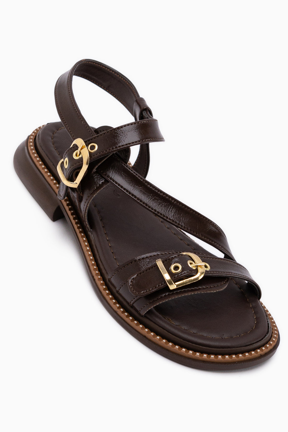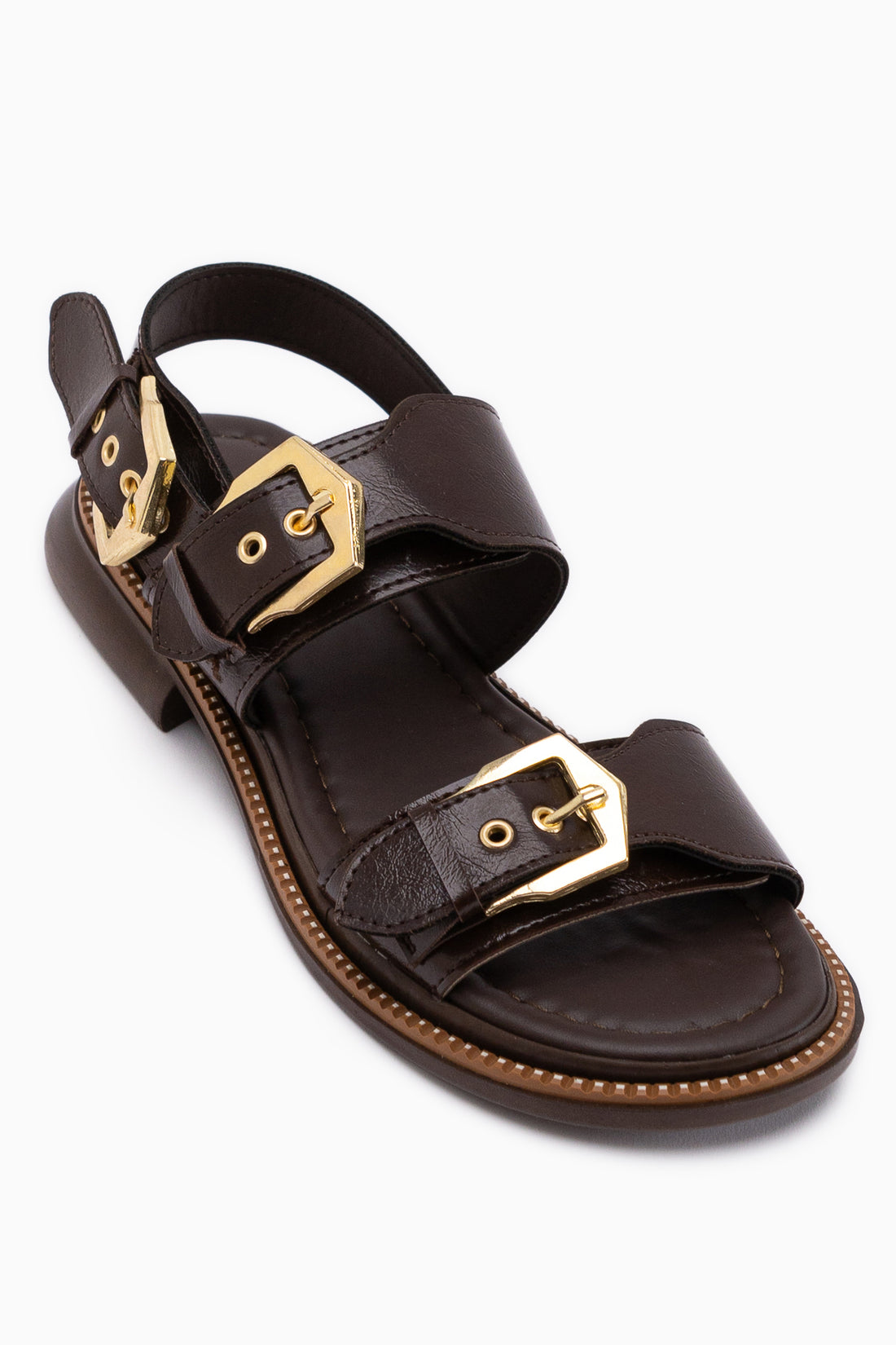 Liena Kahve Çift Tokalı Kadın Sandalet