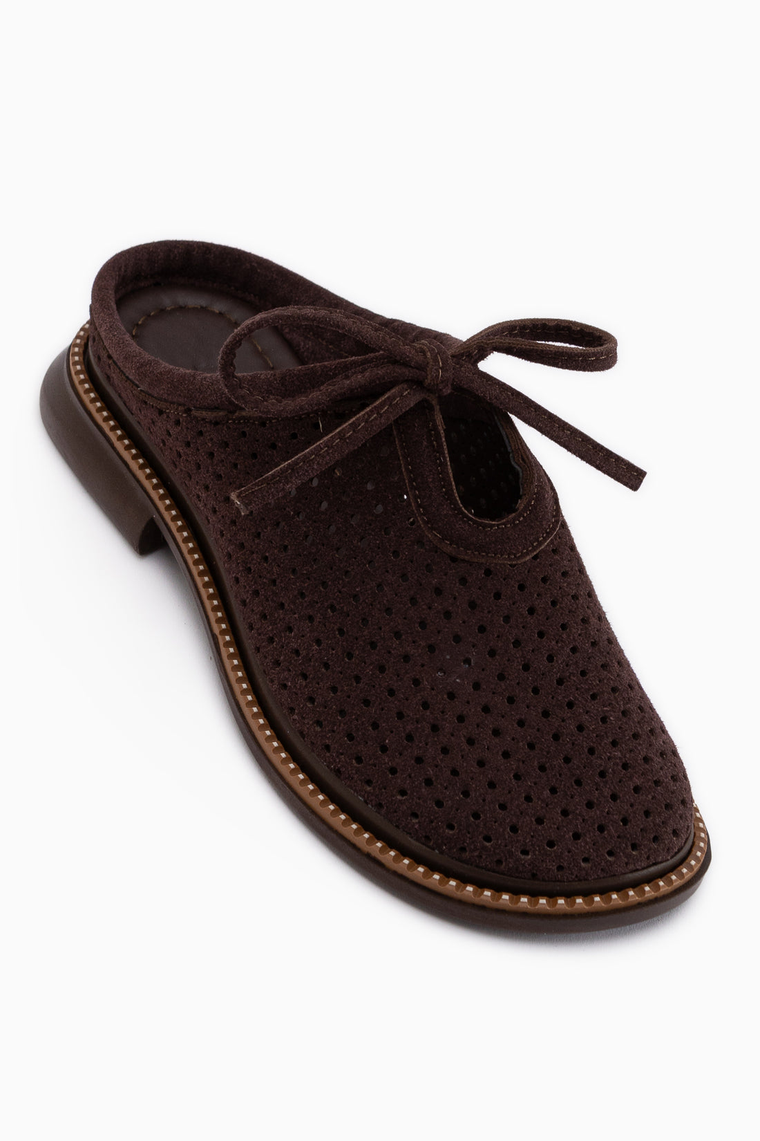 Amelia Kahve Süet Fiyonklu Kadın Babet