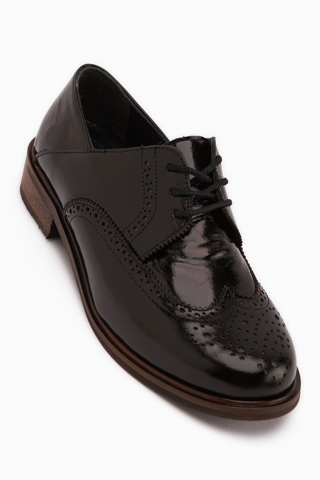 Dena Hakiki Deri Siyah Rugan Bağcıklı Brogue Oxford Kadın Ayakkabı