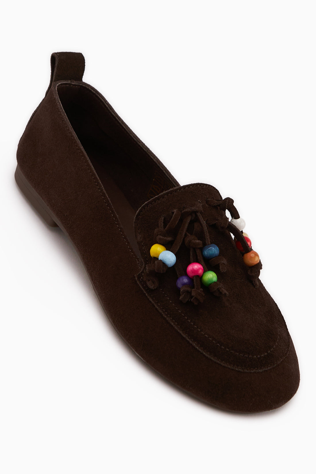 Benita Hakiki Deri Kahve Boncuk Detaylı Püsküllü Loafer Kadın Günlük Ayakkabı