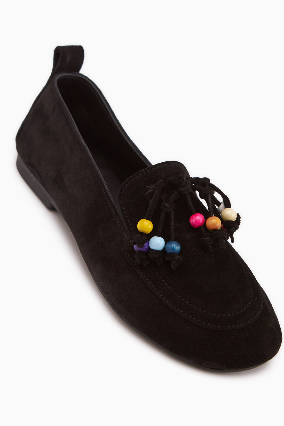 Benita Hakiki Deri Siyah Boncuk Detaylı Püsküllü Loafer Kadın Günlük Ayakkabı