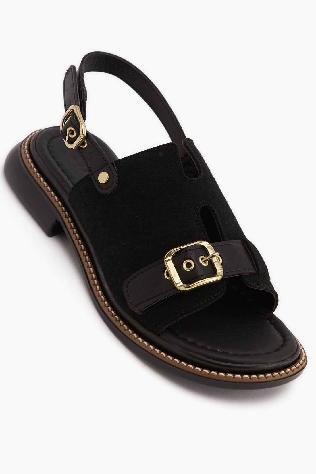 Neveen Siyah Süet Tokalı Kadın Sandalet
