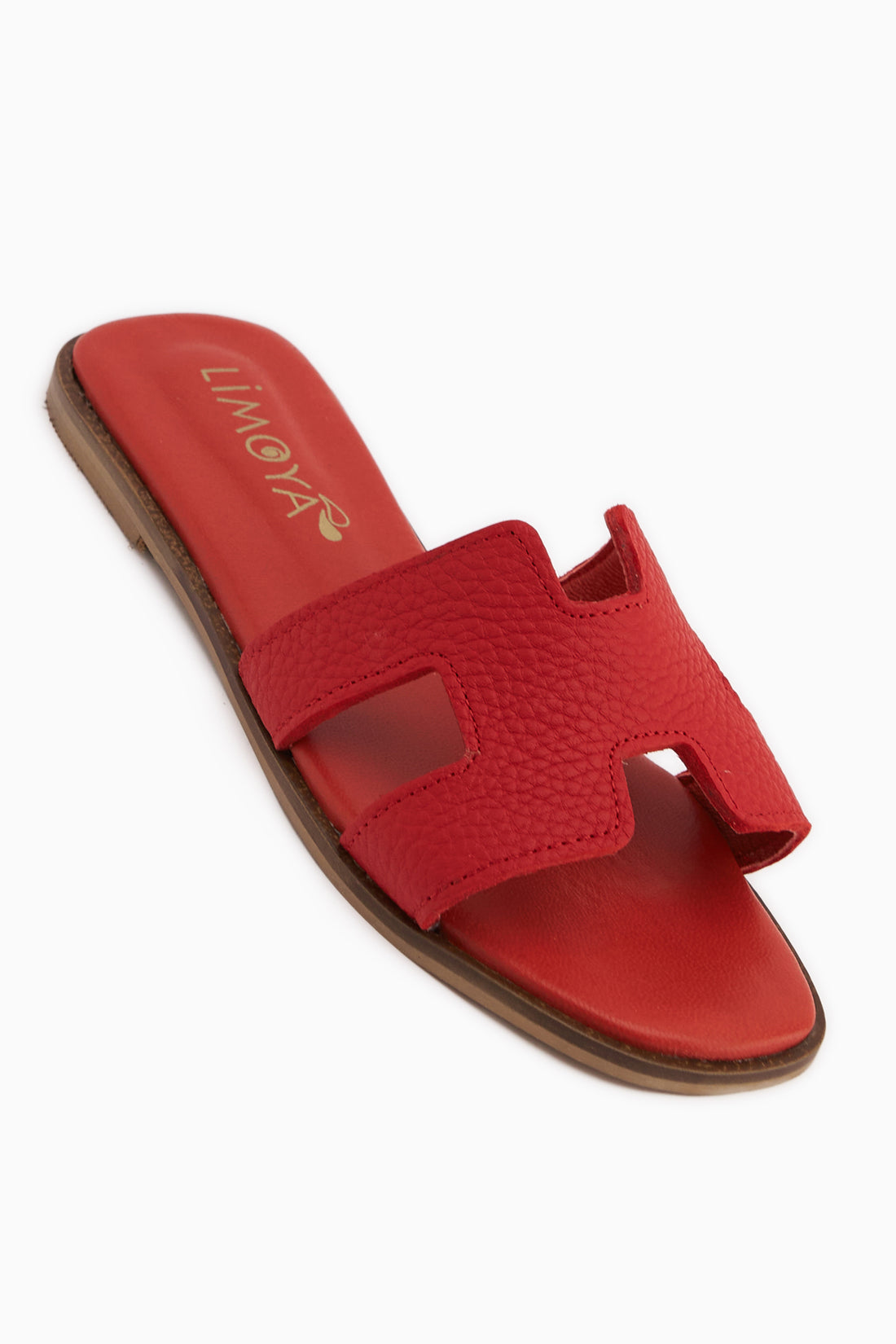 Rosali Hakiki Deri Kırmızı Kadın Terlik