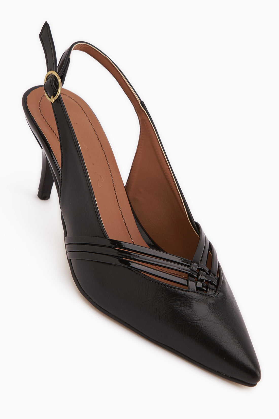 Tira Siyah Dolgu Topuklu Sivri Burunlu Kadın Sandalet
