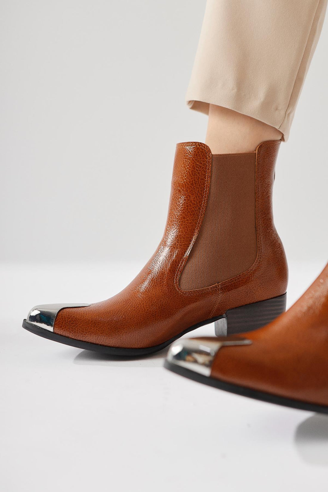 Heda Taba Kırışık Rugan Sivri Burunlu Metal Detaylı Bot