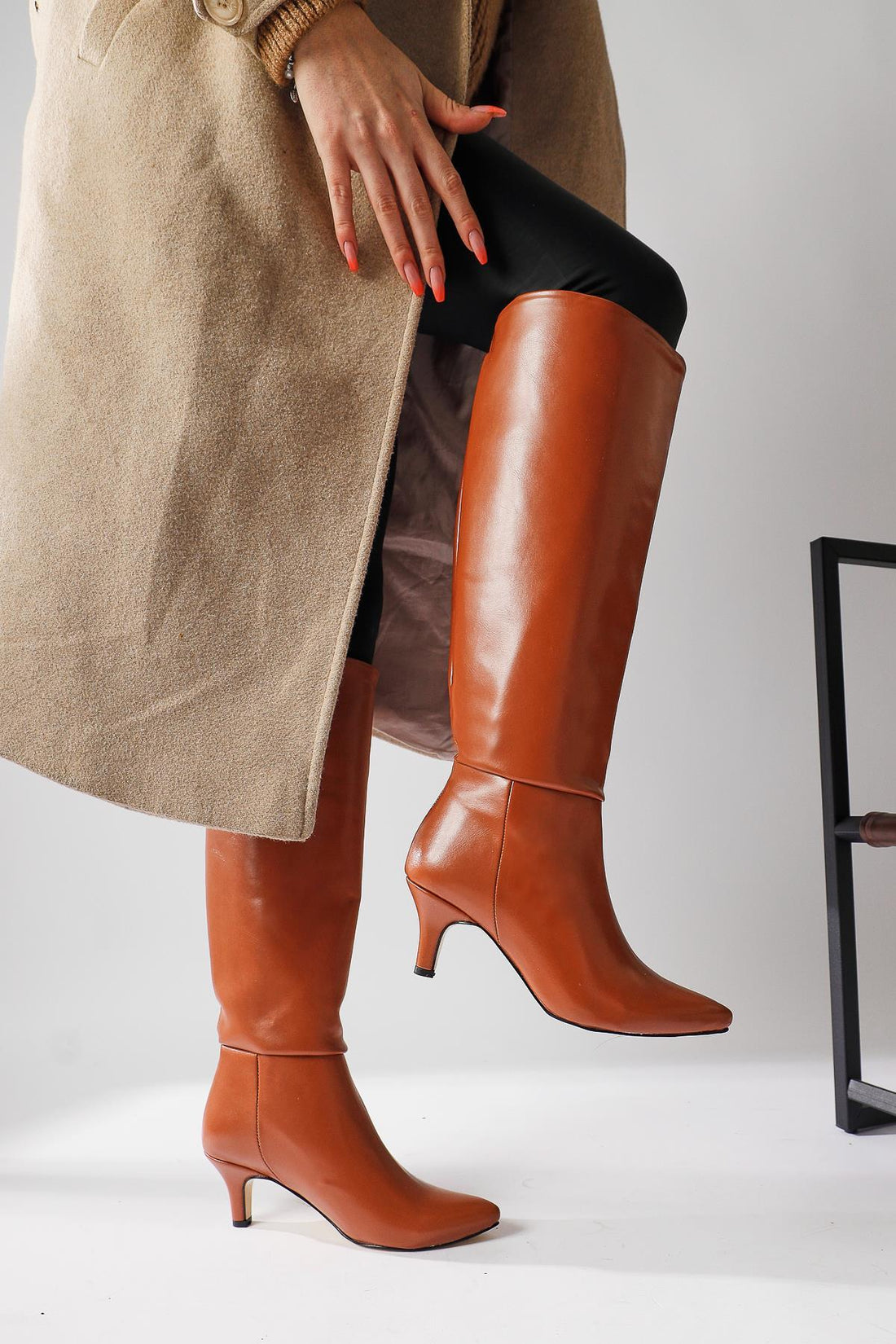 Rimaz Taba Körüklü Uzun Sivri Topuklu Çizme